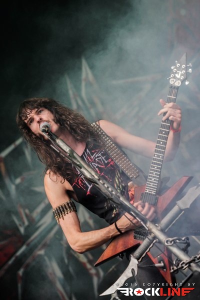 Ko bi morali stopiti na glavni oder Krisiun, se je huronsko ulilo, močan dež pa ni pojenjal vse do sedme ure, celo malo več. Ne glede na to, so še sredi deževja na glavni oder stopili legendarni ameriški metalci iz Seattla Sanctuary, ki jim poveljuje na vokalu znameniti in edinstveni lik Warrela Danea. Njihov nastop je bil razdeljen na dve polovici. Deževno in suho in ko se je s severozahoda prikazalo okno jasnine, je Warell spretno pribil: »Oh, a glimpse of light!« Nastop je bil logično nekoliko skrajšan bend pa je nanizal vsega sedem skladb, odprl predstavo z Arise and Puriy pri čemer ni pozabil vriniti v repertoar obvezno Frozen, zvrstile so se še Let the Serpent Follow Me, Season of Destruction, Die for My Sins, Question Existence Fading koncert pa je sklenil z Taste Revenge. Kultni riffi, kultni obrazi, kulten bend. Škoda le da ga je vreme pobiksalo in Sanctuary tako niso nastopili v optimalnih pogojih. Warrell ostaja izreden poveljnik, karizmatičen, v odrskih debatah s publiko pronicljiv in nenehno zanimiv sogovornik. Vseeno mož ne poseduje več tiste vokalne forme in moči, kot nekoč, ko so pod njegovimi vriski pokali zidovi, zato se je večino časa prilagajal tako, da je le občasno izdatneje razkazal svojo vokalno skrhanost, ko je segal po vokalni višavjih (občasni screami), sicer pa se je raje zadrževal v srednjih legah. Užitek je gledati in poslušati soliranje Lennyja Rutledgea, bend kot celota, ostaja magnetičen, pa čeprav tega magnetizma ni uspel tako intenzivno razviti, kot mu je to uspelo na ogrevalnem dnevu letošnjega Bang Your Head festivala v Nemčiji. Upajmo da nam uspe Sanctuary srečati kmalu znova. V optimalnih koncertnih razmerah. Sicer pa pohvala zasedbi, ki je navkljub vremenskim peripetijam pogumno stopila na oder in oddelala, kar je v teh težkih razmerah, pač lahko.