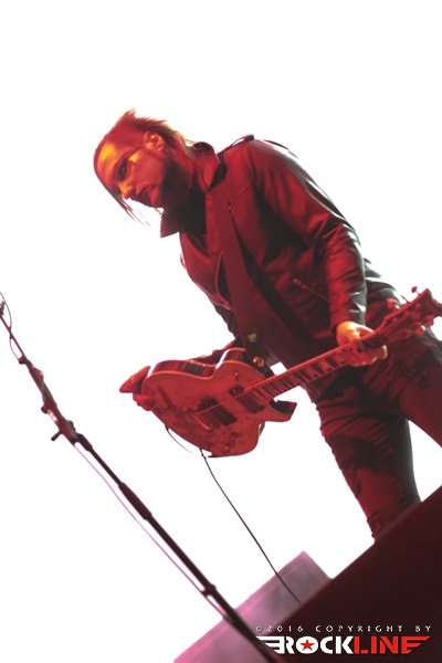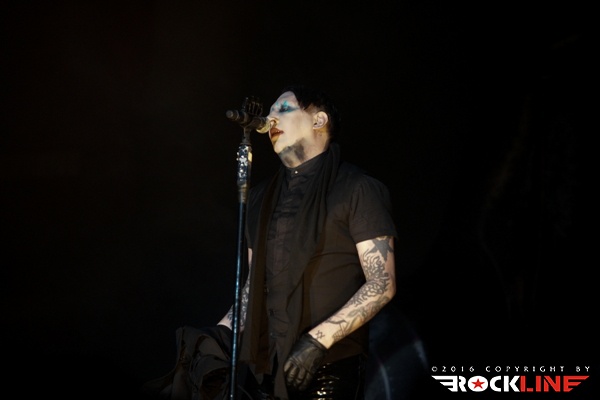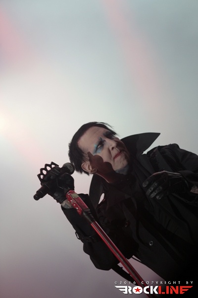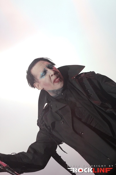 Vloga glavnega nosilca festivala na glavnem odru prvega dne festivala je pripadla ikoni glasbene ekscentričnosti in šok provokacije. Marilyn Manson je mož, ki je skozi leta razvil izjemno mešanico prepoznavne in edinstvene art kulture. Unikatna zmes alternativnega rocka, alternativnega metala, v kateri obvezno zasedejo svoj prostor vplivi industriala, z lišpom teatrom in mračnjaštvom, pa se v vse to vpenjajo elementi »črnega«, če ne že »gotskega« glama. Izvrstno »izkrivljen« rock’n’roll poln sprijenih artističnih deviacij nizko in mastno uglašenih kitarskih fraz, podkrepljen z dodatnimi podritmičnim vzorčenjem, ki ustvarja hipnotično omamo v kateri publika praviloma, kot za šalo je iz rok karizmatičnemu liku pošastnega Mansona. No vse opisano, kar naj bi prinesel Brian Hugh Warner s svojo ekipo na tolminski Metaldays festival, pa tokrat ni bilo realizirano, kot gre sicer pričakovati (in zahtevati) od takšne glasbene institucije. Bend, ki je ravno izdal nov ter skupno že petnajsti studijski album z naslovom »Heaven Upside Down«, se je na odru v Tolminu predstavil v obliki seksteta. Mansonu delajo tako družbo v koncertni postavi »večni« Twiggy Ramirez, ki je za nove čase skupine presedlal s kitare na bas kitaro, novinca na kitarah Paul Wiley ter Tyler Bates, klaviaturist Daniel Fox ter bobnar Gil Sharone.