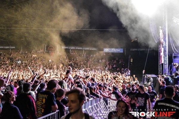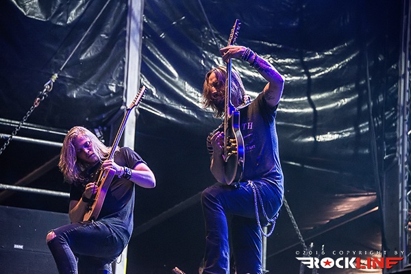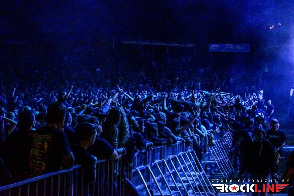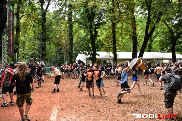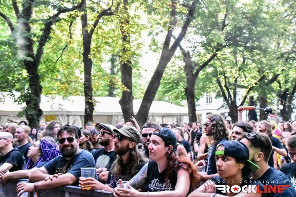Medtem, ko je na »gozdnem« odru že veselo vrelo, se je glavni oder le prebudil in to ob pol peti uri popoldan. Takrat so nanj zlezli avstrijski Moros. Skupina z več kot desetletnim stažem, kombinira elemente death metala in thrasha. V žepu ima le en studijski album, to je »Lakeside Terrorfrönt« izdan leta 2014. V lanskem letu so že nastopili v Tolminu in sicer na ogrevalnem dnevu festivala. Čvrsta in kompaktna predstava. Skladbe Skeleton King, Lakeside Terrorfrönt, 7 P.M. in Psychotic Maniäcs, prijemljejo vneto in stasito. Možje so suvereni, sicer pa s svojim avtorstvom ne prispevajo v metalski abecedarij kaj pretresljivo novega, a stvari, ki se jih lotevajo opravljajo s srčnostjo in predanostjo. Predvsem je zabaval pogled na pevca Monsa, ki je s svojimi psihotično švigajočimi očmi izpod baseball čepice sredi popoldanske pripeke in s skrajno zariplim obrazom napetih vratnih žil, skozi grčanje dodatno naznanjal, da se je ponedeljkovo popoldansko sonce brezkompromisno uprlo v festivalsko prizorišče.