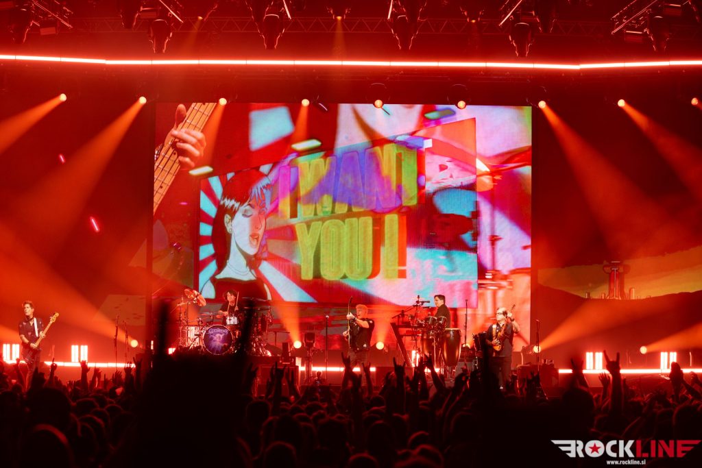 Simple Plan so publiko ogreli že s prvim komadom, a seveda jim to še ni bilo dovolj. Nadaljevali so s “Jet Lag”, ki je v originalni verziji duet z Natasho Bedingfield, v francoski verziji pa z Marie-Mai. Potem je prišel “Addicted”, eden njihovih največjih zgodnjih hitov z refrenom, ki ga še danes pozna vsak pop-punk nostalgik. Nato je sledila balada “Your Love Is a Lie” (2008), s katero se je dvorana spremenila v kolektivno terapijo, nato pa še najnovejši “Nothing Changes” – skladba, posneta prav za njihov dokumentarec, omenjen v uvodu. In prav ta pesem je dokazala, da nabito polna Linz Tips Arena ni bila le polna oboževalcev The Offspring. Glasbeniki, ki so na sceni že več kot dve desetletji, zelo cenijo, ko občinstvo prepozna in sprejme tudi njihove novejše skladbe – in pri “Nothing Changes” so bili z odzivom vidno zadovoljni.