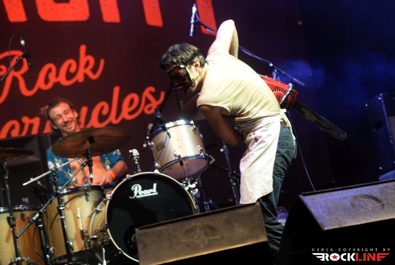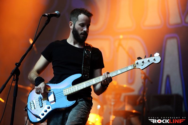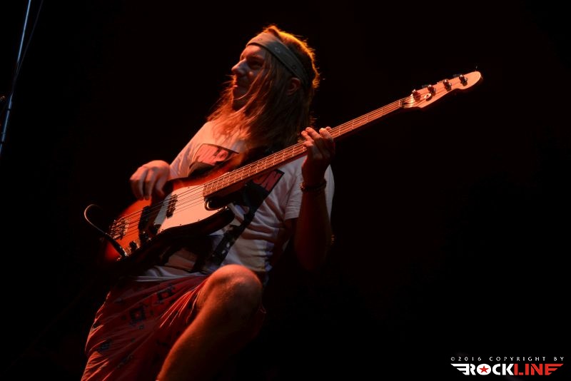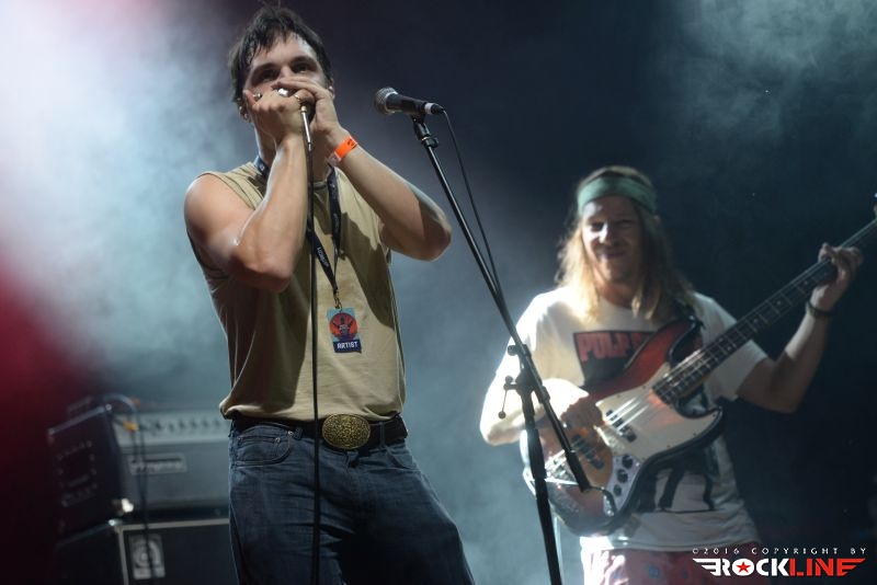 Na odru so petnajst minut do sedme pozno popoldan udarili slovenski hardrockerji Stray Train. Bend, ki je v relativno kratkem času delovanja, odmeril nekaj izrednih razkorakov na poti proti svoji obči prepoznavnosti, zavedajoč se dejstva, da je slovenski trg za apetite in vizijo skupine daleč, daleč preozek. Stray Train so prodrli na mednarodno prizorišče. Odskočno desko za to jim je dal izvrstni in pretkano dovršeni studijski prvenec »Just ‘cause you got the monkey off your back doesn’t mean the circus has left town«, ki so ga izdali v lanskem letu, kar jih je poneslo na, če se ne motim, kar 40. skupnih koncertov s skupinama Blues Pills in Kadavar. Številka 40 niti ne deluje »strašljivo« v kolikor ji ne prišteješ dejstva, da je bilo tih štirideset koncertov zaigranih v pičlih 43. dnevih. Res vsega spoštovanja vredno.
