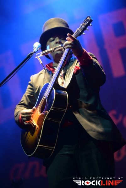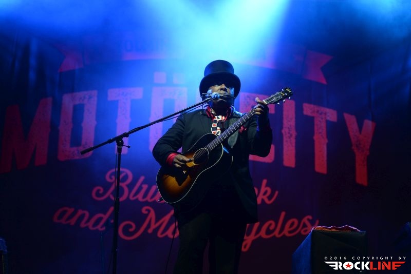 Chris Thomas King je veljal za glavnega nosilca drugega dne festivala. Temnopolti multi-instrumentalist in silno cenjeni glasbenik mednarodnega prizorišča, je prispel v Tolmin brez svoje spremljevalne ekipe. Nastopil je v režiji »en človek«. V prvem delu je pretežno izvajal komade, kjer sta mu, ob vokalni interpretaciji, delali družbo akustična kitara in orglice. V vsem česar se je dotaknil je bilo moč izluščiti prefinjeno zmes delta bluesa, country folk glasbe, soula prav tako pa ni bilo težko izluščiti, da bi se h Kingovim napevom izvrstno vključil tudi ženski gospelovski zbor. Chris Thomas King je nekje na sredini predstave presedel za klavir in razkazal tudi vse svoje mojstrstvo obvladovanja tega instrumenta, pri čemer je seveda ohranjal vso kompaktno sledljivost in rdečo nit izvedenih točk. Med koncertom se je publika nekolik razkropila, mož je to zaznal in se potrudil predramiti maloštevilne opazovalce, da se aktivneje vključijo v njegov nastop. Ob nagovorih ni pozabil korenito ošvrkniti blaznost dejanj novega ameriškega predsednika, kar niti ne čudi. Pustimo politiko raje pri miru. Mož, ki bo v nekaj dneh povil svoj že 27. studijski glasbeni projekt imenovan »Hotel Voodoo«, slovi kot vrste očeta, ki je združil blues s hip-hopom (rapom), vendar na tem samostojnem koncertu, brez spremljevalne ekipe, to niti ni prihajalo do izraza. Ostal pa je v spominu unikatni Kingov »Oooh-Ooooh« napev s katerim je večkrat polnil prehode posameznih točk svojega nastopa. Zaigral je tudi Hard Tme Killing Floor Blues, ki jo je nekoč davno tega izvajal Skip James ter I Am A Man of Constant Sorrow (avtor Dick Brunett). To sta obe točki povezani s filmom »O Brother, Where Art Dou?« v katerem nastopa v eni izmed igralskih vlog tudi Chris Thomas King. Tako med drugim ni manjkala niti. Čutno, močne emocije, vokalno podoživeto in edinstveno. Čeprav je King priredil zares lepo predstavo, se je izkazalo, da je v solo režiji le pretrd oreh za obiskovalce. Tako jih je bilo pred odrom manj, kot bi si izvajalec njegovega kova zaslužil. Upajmo, da se mož vrne. Naslednjič v spremstvu svoje zasedbe.