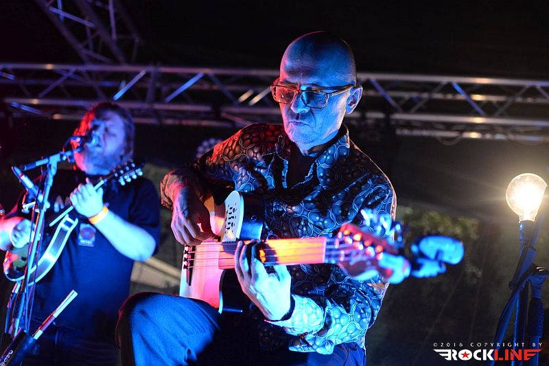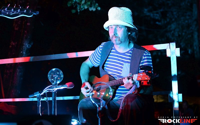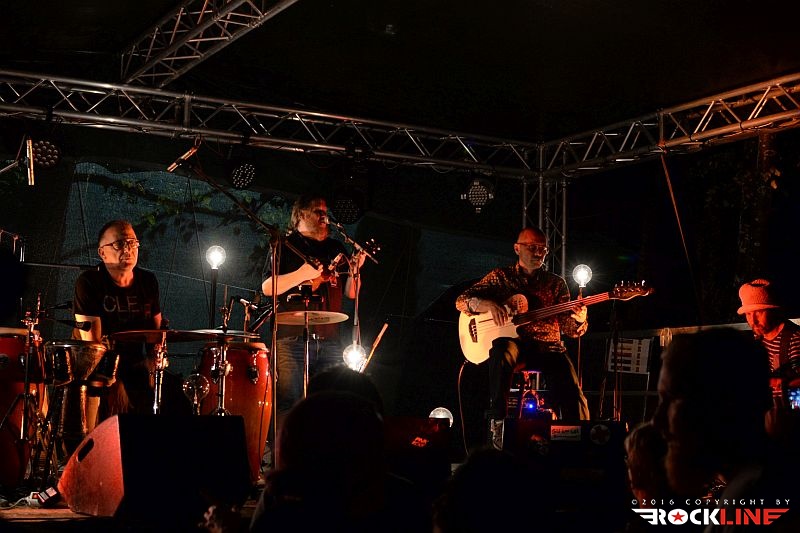 Čeprav se je program drugega dne na odru »B.B. King« že sklenil, pa v glasbenem oziru dogajanja še ni bilo konec. Prav na sotočju Tolminke in Soče, to je na obali, so napovedali svoj koncert v režiji »Tiho«, slovenski art rockerji Dan D. Intimno in tiho torej. Tiho režija je zastopana s popolno prestrukturiranostjo aranžmajev s katerimi so se Dan D dotaknili nekaterih najbolj vidnih in prepoznanih skladb svojega bogatega opusa (vključno s hiti). Skupina je v ta namen izdelala domače, to je »hišne« instrumente ter ob vključitvi ostalih »eksotičnih« instrumentov, vključila tudi nekaj izjemno zabavnih in zanimivih ročno izdelanih izumov, kot se pač porodijo v domišljiji glasbenega umetnika. Navezanih steklenic (presenetila je tista od Radenske še iz časov, ko je bila to slovensko podjetje), je bilo to pot občutno manj, kot v letih 2012 in 2013, ko je turneja Tiho doživljala svoj razcvet. Obra je tako tokrat pustil doma tubo, v Za naju punca, pa jo je nadomestilo njegovo igranje na glavnik. To pomeni,da se Dan D lotijo v današnjem času izvedbe koncerta v režiji Tiho le izjemoma, na željo promotorja oziroma, če obstaja za kaj takega izkazan večji interes. Tudi to druženje s skupino je prineslo nič manj, kot velik koncertni užitek zbranim sladokuscem. Ne le, da so Dan D izkazali enkrat več, kako ta ubrani kvintet še vedno združuje in povezuje med seboj izjemna tovarišija, ki drži skupaj skupino skozi leta, pač pa tudi koncert neverjetno vedrega in zabavnega razpoloženja, ki je ponudil izvrstno dnevno formo te izkušene skupine. Intimno vzdušje je krepila tudi posebna odrska razsvetljava z žarnicami postavljenimi kakšen meter nad tlemi, pri čemer so lučkarji lahko nenehno korigirali oziroma prilagajali njihovo svetlobno jakost. Tomislav Jovanović “Tokac” z bisernico, mandolino, Marko Turk “Tučo” z ukulelo, bisernico, mandolino, Boštjan Grubar z melodiko,zvončki, vokoderjem, Nikola Sekulović s pol-akustičnim basom brez prečk in Dušan Obradinović “Obra” na cohonu, kongah, tarabuk, činelah ter glavniku, so pri vsem tem uporabljali tudi obsežni arzenal rekvizitov, ki sodijo v obvezni kuhinjski pribor. Šegavo, igrivo, iskrivo in kot vselej. Z zvrhano mero pozitivnih vibracij ter zabave. Ljudje so to hipoma začutili in energija sodelovanja na relaciji publika-skupina, je bila na moč kompaktna. Skladbe so tako Dan D predrugačili. Nekatere tako izrazito, da si jih glede na izvirnik, komaj razvozlal. Tudi ritmično, pri čemer prevzema denimo pozornost skladba Čas, zapeljana v salsa ritmu. Pa tudi v smislu samega melosa, pri čemer je denimo skladba Tiho na momente povlekla v melosu tudi na »arabeske«. Skratka. Tisti, ki so turnejo »Tiho« slučajno izpustili, so tokrat na sotočju definitivno nadoknadili zamujeno. Za dobro energijo je seveda vseskozi skrbel tudi izjemno vedro razpoloženi Tokac, ki je na začetku povprašal, če ima kdo pri roki kakšno dobro smotko in jo je kasneje med špilom tudi dobil, pri čemer se dekletu iz publike, ki ga je obdarovalo, ni pozabil prisrčno zahvalit. Domače je domače. Boljše robe pač ne dobiš. Vsi to vemo. To so dejstva.
