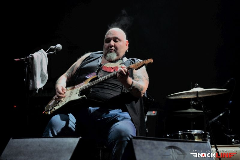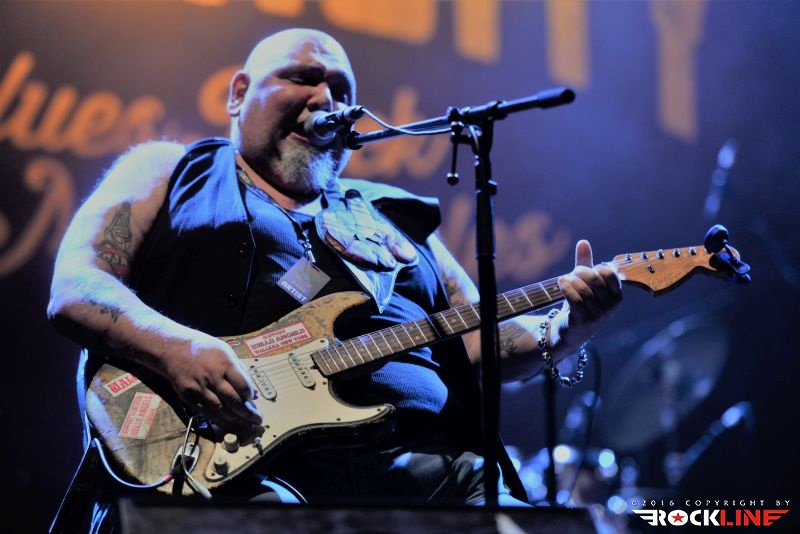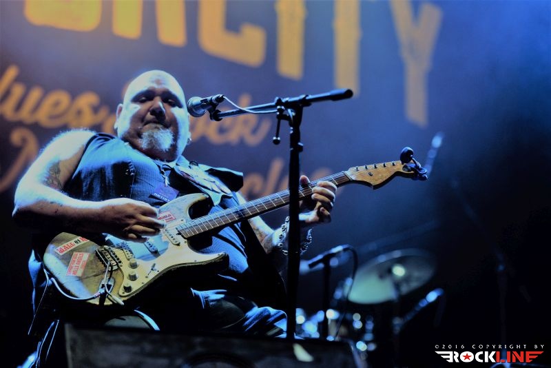 Vloga glavnega nosilca prvega dne festivala pa je pripadla Tedu Horowitzu, možakarju, ki je svetovni glasbeni srenji znan pod vzdevkom Popa Chubby. Blues in rock kitarist doma iz ameriškega Bronxa je tega dne dostavil največ tistega, kar zadržuje v glasbi oznaka blues. Koncert je odprl zelo taktično. V hipu je bila publika njegova, ko se je že uvodoma lotil The Leaves klasike Hey Joe, ki jo je nekoč davno tega močno populariziral pokojni Jimi Hendrix. Popa Chubby je zaigral na odru po vzoru udarnega power blues rock tria. Spremljala ga je ritem naveza Anthony Candullo (bas kitara) in Tom Curiano (bobni). Blues teče kitaristu v krvi. Predstavil se je kot absolutni »filingaš«. Sama vibracija udarjenih tonov, kitarskih fraz, prehodi, stopnjevanje izbrane fraze v krešendo in vrnitev v izhodiščni moment taistega motiva. Nenehno atmosferično valovanje. Ozračje nabito z emocijami in strastmi. Publika je bila v transu, ni bilo človeka, ki bi se pridušal. Povsod vedrina in izvrstno razpoloženje. Pri Popa Chubbyju je izvrstno to, da ni komplikator in pristopa do bluesa zelo pragmatično. Zadev se loteva zelo elementarno, pri čemer so opazni vplivi mojstrov, kot je zlasti Buddy Guy, pa tudi Freddie King, le da zna biti Popa na trenutke še kako hrupen, domala razuzdano punkersko togoten. A to so le trenutki. Njegove skladbe vseskozi »peljejo«. Tako v frazah, ko v prehodnih delih, ki vodijo v izdelane mid eight pasaže. Tam notri prebiva pretanjeno situirana solažo, kjer je vsak ton plasiran in položen z prirojeno čutnostjo. Tako v poltonskih zategljajih, kjer kitarist mojstrsko sprevrača vzdušja, kot v sosledju hitro zaigranih linij. Mož je vseskozi na mestu. Pretanjen, sofisticiran, pa tudi drzno robat in stesano možat. To velja tudi za izvrstno vokalno predstavo. Pretežno je izvajal svoj avtorski material, vendar pa so se znašle tudi »prirejene cvetke«, kot sta npr. ena izmed tem glasbene podlage za film »Boter« ter Misirlou (film »Šund«). Nemalo je Popa presenetil z integracijo huronskega metal favorita War Pigs (v izvirni režiji Black Sabbath), ki ga je Chubby zaigral v celoti in povsem vdahnil skladbi svoj izrazni pečat. Ni ostal ravnodušen niti do intimnih trenutkov, ko je odjeknila znamenita Over the Rainbow. Izmed avtorskih točk so završale Grown Man Crying Blues, Take Me Back To Amsterdan, I Don’t Want Nobody, 69 Dollars, Two Dogs ter proti koncu Chubby’s Boogie. Skratka. Tako se igra blues rock. Da preprosto pelje in očara. Kitarska in vokalna karizma možakarja je izjemna tudi v trenutkih ko se presede iz stola na dodani set bobnov in izvajata s Curianom bobnarski duel. Vsekakor ne tako impozanten, kot je to nekoč veljalo pri Philu Collinsu in (očitno upokojenih) Genesis koncertih, je pa ta vložek dodatno razbarval in razgibal sicer izredno krepostno in pozitivno vibracijo sklepnega dela prvega dne festivala.