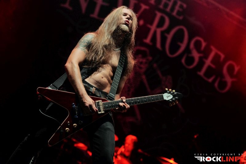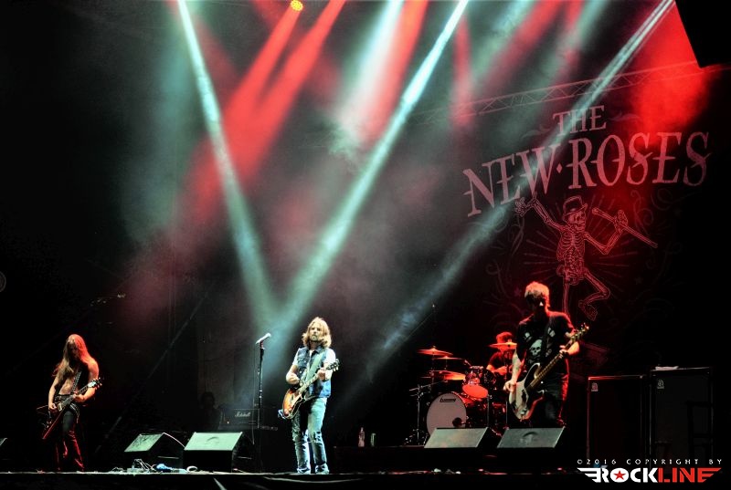 Potem pa so na oder priseli The New Roses, sicer nemški hardrockerji, nastanjeni v Wiesbadnu. Kvartet, ki ga zastopajo Tommy Rough (vokal, kitara), Dizzy Presley (kitara), Stefan Kassner (bas kitara) in Urban Berz (bobni), je preskočil na višji nivo svojih glasbenih dejavnosti z letom 2012, ko se je ustalil v omenjeni postavi ter od takrat nanizal tri studijske albume, zadnjega med njimi »One More For The Road«, prav v lanskem letu. The New Roses »letijo visoko«. V relativno kratkem stažu delovanja so igrali na velikih festivalih, odpirali koncerte pred zvenečimi imeni rocka and rolla pa tudi metala, kot so mdr. Joe Bonamassa, ZZ Top, Roger Chapman, Molly Hachet, Accept in Saxon, vrata pa jim odpira preprosto, njihova odrska odličnost. Izjemna dinamika, izjemna naštudiranost. Izjemna profesionalnost. Od glave do pete. Kompaktno izdelan energetski hard rock šus. Sicer ne prinašajo glasbene revolucije, a vsega kar se lotevajo, čeprav spominjajo riffi nemalokrat na starejše hard rock zasedbe, kot so Gotthard ali stari Bon Jovi, opravijo z neverjetno žgočim žarom in prepričljivostjo. Vokal blago rezek, a eksploziven, z nič antipatičnega »nemškega« naglaševanja angleščine, kar se sicer rado navzame nemških vokalistov. Nenehno tekanje po odru in koketiranje s publiko, menjanje pozicij. Dodelane vokalne harmonije, izvrstne solistične pasaže, kompaktno vžigajoči riffi in nalezljiva refrenska spevnost. Bend je preprosto očaral. Kdor je nemara zgrešil njihovo predstavo v Tolminu, ima možnost popravnega izpita na letošnji izdajo Harley Davidson festivala, ki se bo zgodil streljal stran od Beljaka, kjer nastopijo The New Roses, v družbi kultnih The Darkness in sicer v prvem vikendu letošnjega septembra. Bend je odigral sledeč repertoar: Every Wildheart, Forever Never Comes, Dancing on a Razorblade, It’s a Long Way, Life Ain’t Easy (For a Boy With Long Hair), Devil’s Toys, One More for the Road, Thirsty.