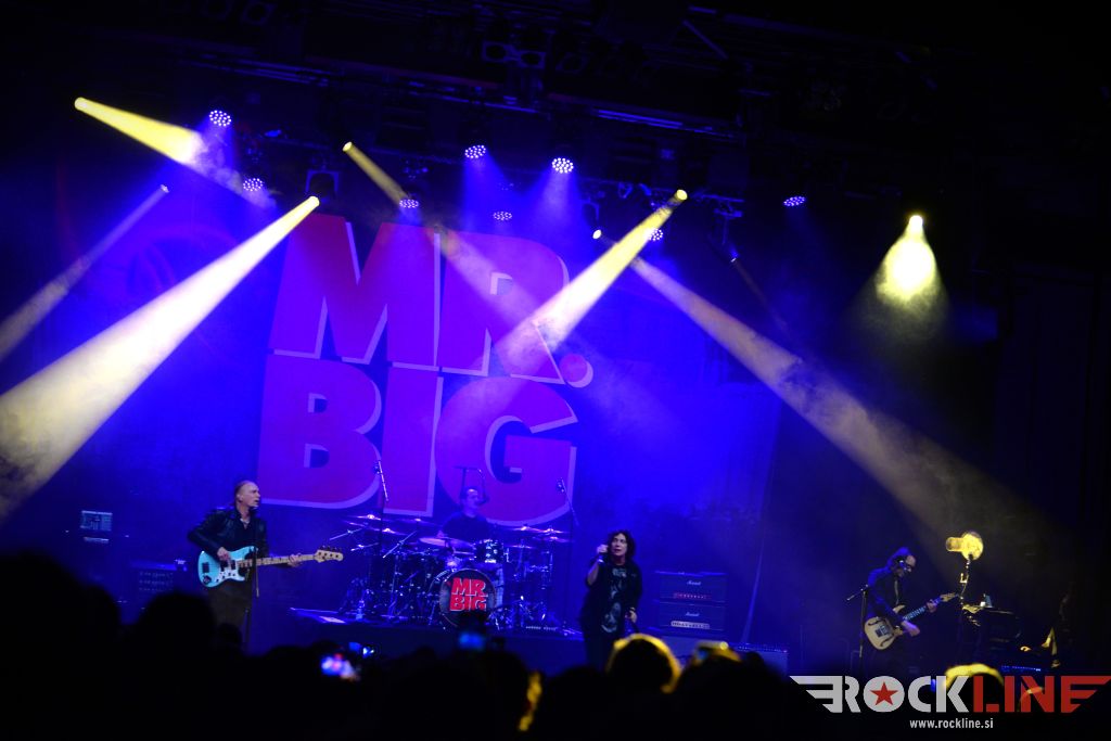 Mr. Big so svoj nastop so odprli z “Addicted to that Rush”, najbolj razvpito skladbo z njihovega istoimenskega prvenca, s katerim so pošteno razgreli publiko, ki je v prvih vrstah norela kot, da je prišel drugi vnebohod, s to razliko, da sta nadangela oznanitelja nadomestila kar oba virtuozna giganta Gilbert in Sheehan. Mr. Big, ki so v tem večeru odigrali celoten “Lean Into It”, njihov drugi studijski album iz leta 1991 s katerim so doživeli veliki prodor, so bili ves čas izjemno dobro razpoloženi. Hardrockerski antemi so si sledili eden za drugim. Prvi vrhunec večera je predstavljala izvedba uspešnice “Just Take My Heart” med katero je v dvorani zavladalo kar nekaj nostalgične atmosfere.