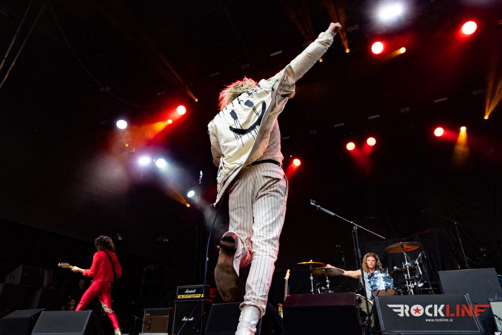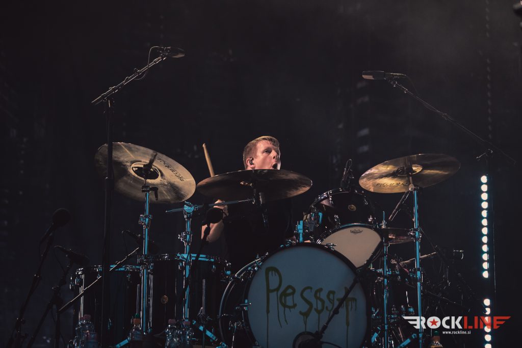 Ura je 20:30 in na oder stopijo My Chemical Romance. Vpitje dosega huronske razsežnost, samo družno kričanje, pa dobesedno preglasi preglasi nastopajoče. Predvsem mladenke so se bendu z različnimi transparenti, med katerimi je na enem pisalo “Thank you for keeping me alive”, na nek način zahvalile za ustvarjeno glasbo. To v zvezi z My Chemical Romance, ni nič posebnega. Skupina namreč venomer prejema zahvale oboževalcev. Celo staršev le teh. V smislu, da jim je njihova glasba stala ob strani med težkimi preizkušnjami v življenju. Mnogi so mnenja, kar je žal tudi realna stigma emo kulture, da so njihove skladbe preprečile samomore ne le oboževalcev samih, pač pa tudi njihovih bližnjih prijateljev in sorodnikov. Ravno ta fenomen je zelo verjetno prvi razlog zakaj so My Chemical Romance, po lepem obdobju koncertnega mirovanja ter z malo sveže izdanega avtorskega materiala (nedavna je izšel prvi novi single – prvi po letu 2013), tako dobro obiskani tudi na aktualnih koncertih. Govorimo o prizoriščih nivoja stadionov in velikih open-air dvoran po Evropi. Po uvodnem koketiranju, pri čemer so publiko takoj osvojili s svojimi privzdignjenimi emo-pričeskami, so se fantje za začetek lotili torej edine skladbe, ki so jo ustvarili v zadnjem desetletju z naslovom The Foundations of Decay. Prej baladna skladba, kot kaj drugega, se je do tega dne že odlično prijela med publiko. Ta je komad obvladovala, kot da bi nastal pred dvajsetimi leti.