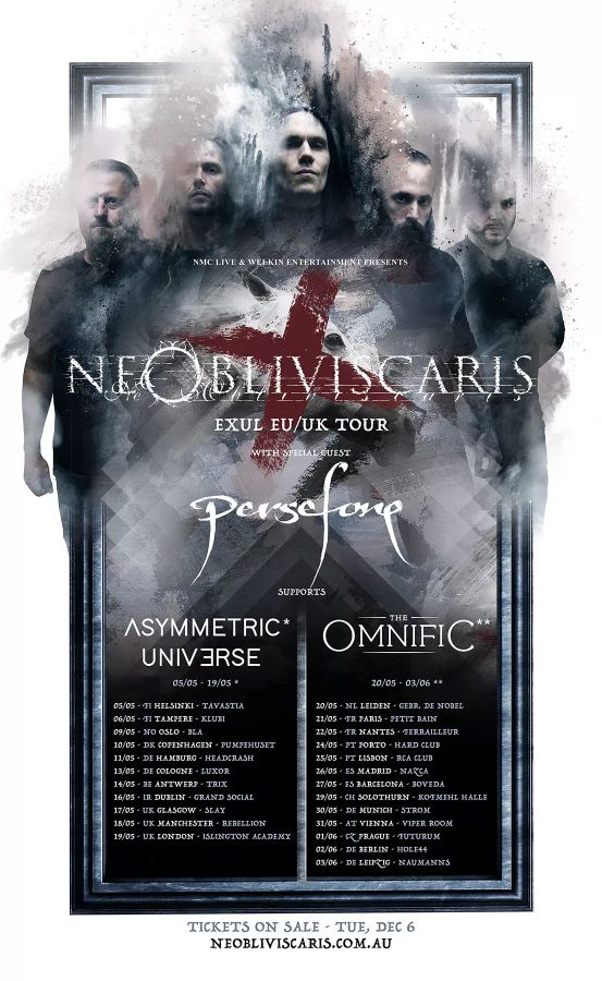 Ne Obliviscaris so prav tako potrdili datume nove evropske in britanske turneje, ki bo potekala v prihodnjem maju in juniju. Na njej bodo skupini v vlogi posebnih gostov delali družbo andorski progresivni metalci Persefone. V prvem delu turneje bodo sodelovali v vlogi predskupine italijanski progresivni metalci Asymmetric Universe, na drugem delu pa Avstralci The Omnific.