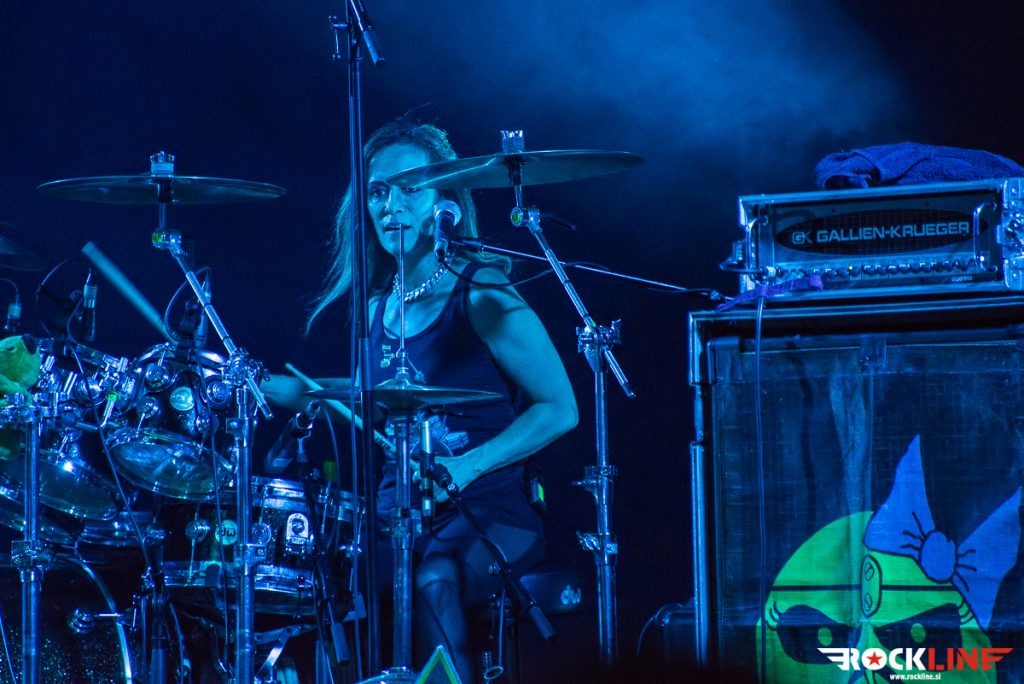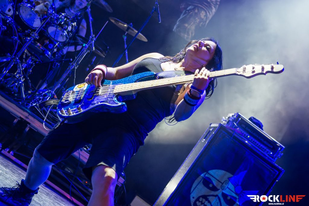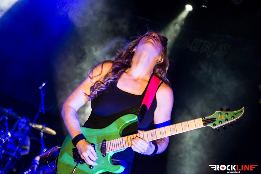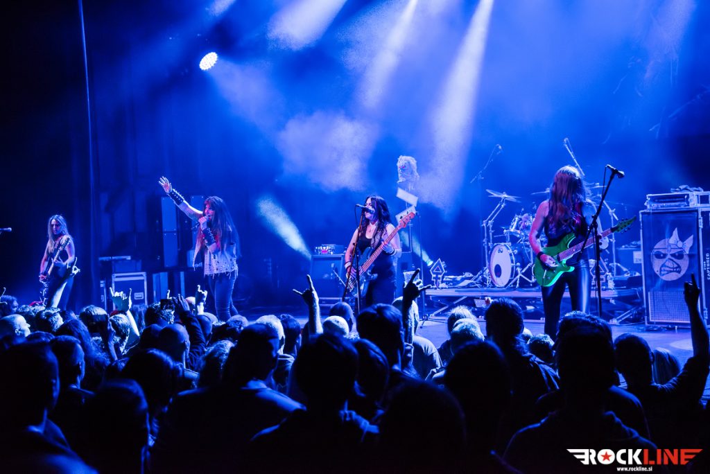Po kar dolgih pripravah so točno petnajst čez deseto (jasno jih je napovedal Doctor Doctor) na oder stopile The Iron Maidens in Ljubljano pozdravile z nesmrtnim Aces High. Bend trenutno sestavljajo Linda McDonald (Nikki McBurrain) za bobni, basistka Wanda Ortiz (Steph Harris), kitaristki Courtney Cox (Adriana Smith) in Nikki Stringfield (Davina Murray) in vokalistka Kirsten Rosenberg (Bruce Chikinson), preden je pobegnila k Aliceu Cooperju pa se je v skupini kalila tudi Nita Strauss (Mega Murray). No, Kirsten se je med Aces High še precej močno lovila in prvih nekaj komadov z nekoliko globlje intoniranim glasom prej kot Bruce Dickinson zvenela skoraj kot Blaze Bayley, a se je hitro unesla in prikazala zelo korektno vokalno predstavo, ki jo je do konca skoraj dvournega koncerta lepo stopnjevala. Punce so po uvodnem spoznavanju konkretno sesule z izrednim in zelo dobro izvedenim inštrumentalom Losfer Words (Big ‘Orra), pri katerem je zmotilo le, da Linda McDonald uporablja dvojno bas pedalko, česar se z Iron Maiden pač ne počne in (nas) je puriste stisnilo pri srcu vsakič, ko se je zaslišalo »duplo«. Sicer čez inštrumentalno izvedbo, razen manjših kiksov, ki se jih je zavoljo dobrega vzdušja dalo preslišati, ni kaj reči, saj so punce material naštudirale pridno in vestno (prepričala je predvsem Ortizeva, ki je poskrbela za tako nezgrešljivo basovsko rožljanje). To se je še toliko lepše poznalo pri obskurnih biserih, ki jih v originalni izvedbi najbrž ne bomo slišali nikoli. Punce so tako naravnost presunile s cukrči in bombončki Flash of the Blade, Purgatory in Still Life, še najbolj pa z genialnim epom Alexander the Great, ki ga Iron Maiden v živo niso odigrali še niti enkrat.