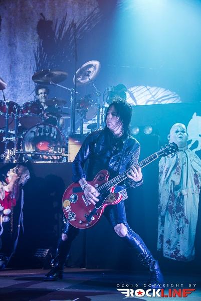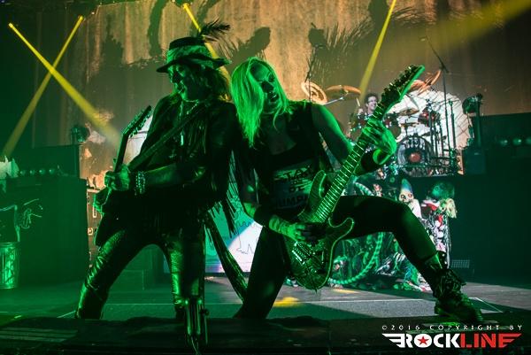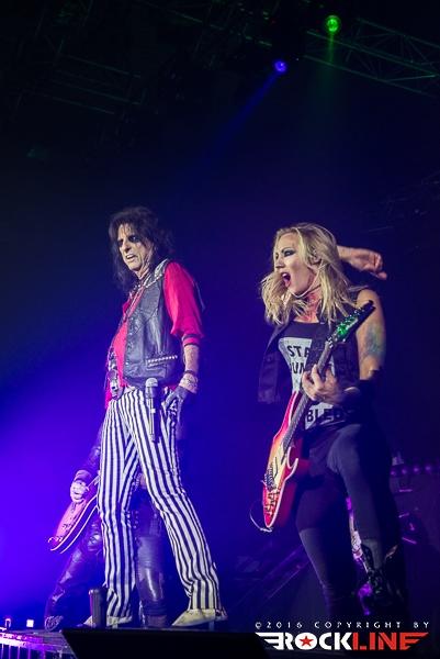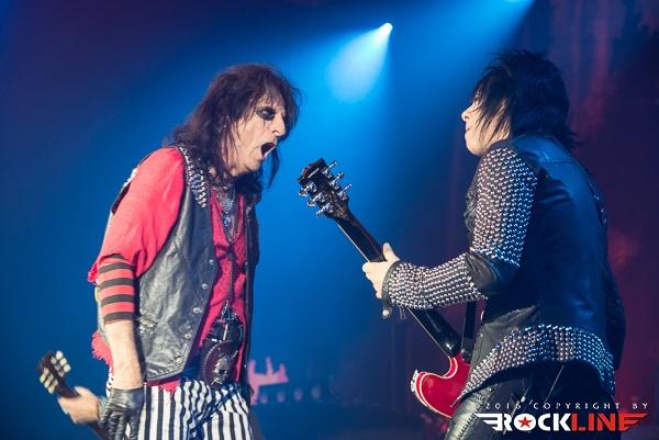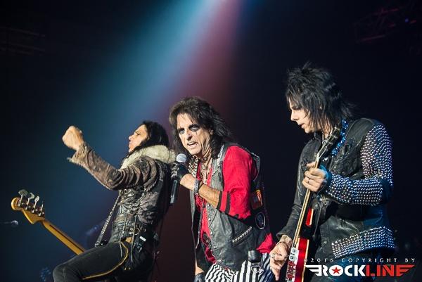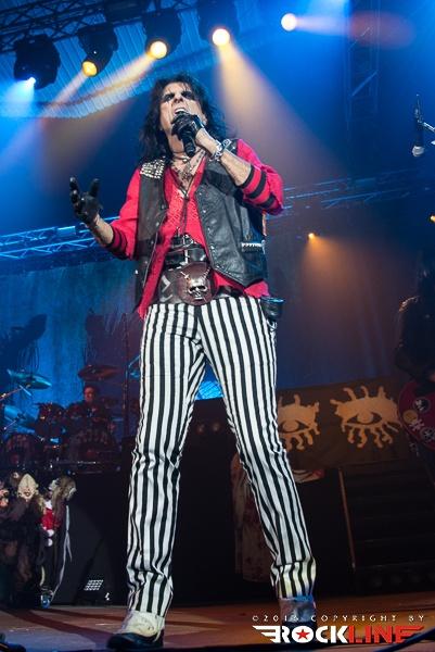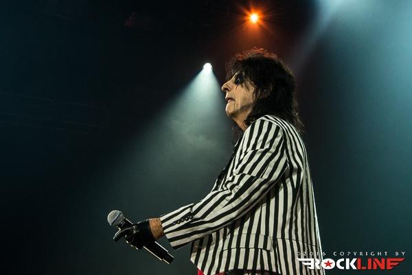 V Aliceovem bandu je potrebno izpostaviti tudi sijajnega bobnarja Glena Sobela, ki se je dobro izkazal tudi med solo točko in basista ter spremljevalnega pevca Chucka Garricka. Preostala dva kitarista Ryana Roxieja in Tommya Henriksena, ki sta sicer spodobno opravljala svoje inštrumentalne naloge in sta cenjena priložnostna glasbenika, je Straussova s svojim virtuoznim igranjem kar nekajkrat pošteno zasenčila. Nabor izvedb je bil po pričakovanju sestavljen iz Aliceovih priljubljenih klasik, predvsem tistih iz sedemdesetih let prejšnjega stoletja. Njegov solo prvenec »Welcome to My Nightmare« (1975) je bil več kot dostojno zastopan, saj je iz njega izhajal že otvoritveni »The Black Widow«, kjer je Alice na oder prikorakal zavit v črno ogrinjalo. Slednje je kmalu odvrgel in se pojavil v obleki s cilindrom s katero je spominjal na nekakšnega križanca med direktorjem cirkusa in pogrebnikom. Gizdalinska palica je, po pričakovanju, kmalu romala med publiko. Med (stranskimi) odrskimi liki smo v tem večeru zasledili tudi pritlikavca in nakaze v plinskih maskah.