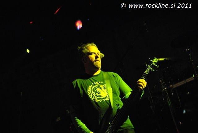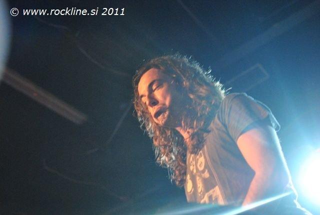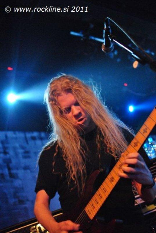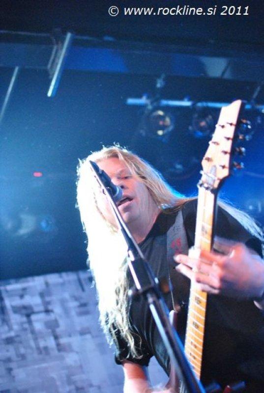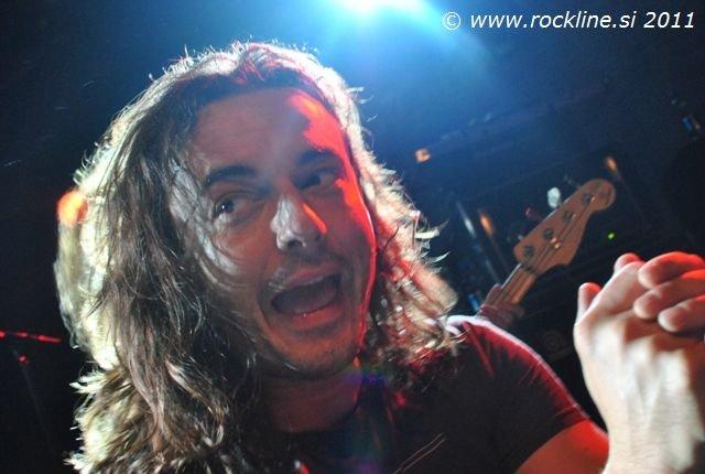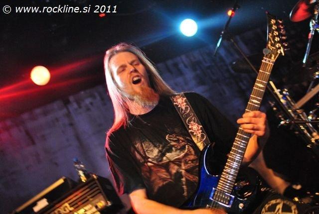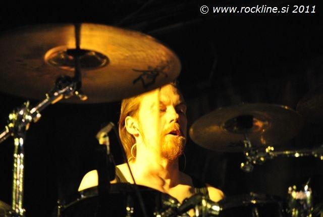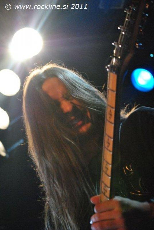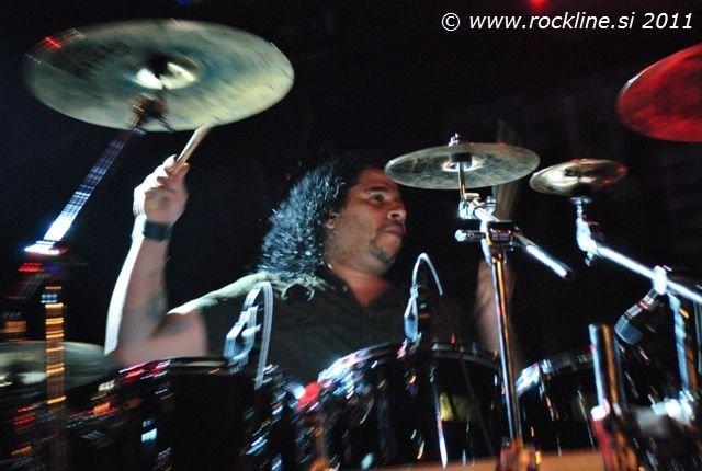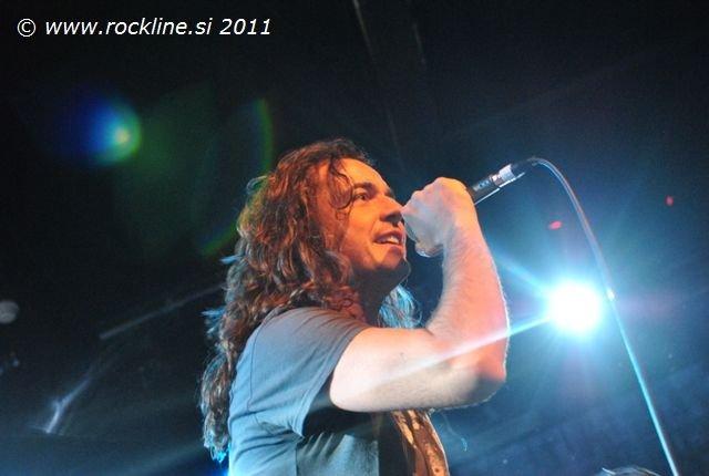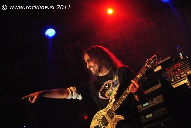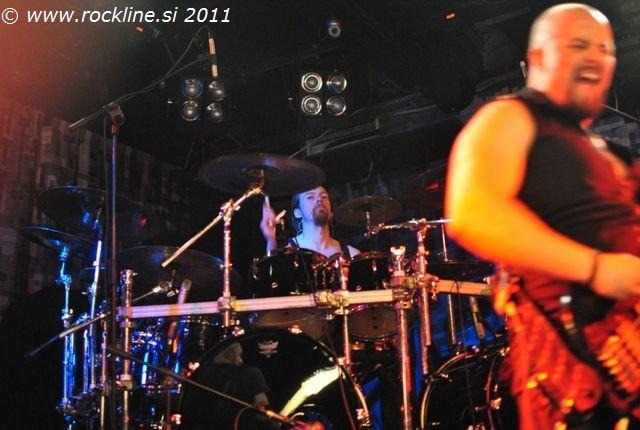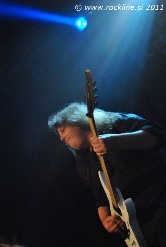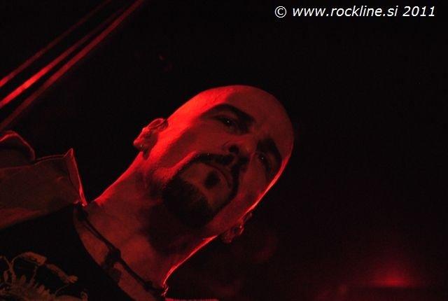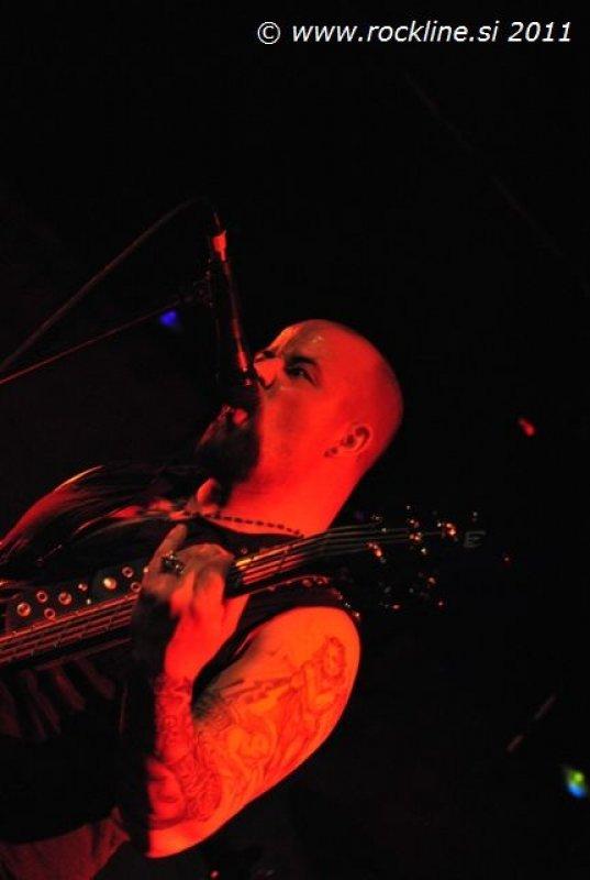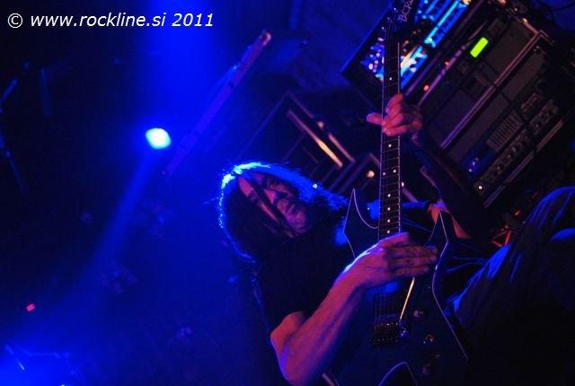 In ameriški veterani progresivnega metala so imeli resnično težko nalogo stopiti na oder po peklenskemu setu Nevermore. Symphony X so samozavestno in suvereno stopili na oder, tako kot se to spodobi za eno večjih in pomembnejših zasedb žanra. Symphony X so pod vodstvom odličnega Russella Allena začeli z udarno Of Sins and Shadows, ki je dokazala fenomenalno formo benda, a žal tudi najslabši zvok večera. Zaradi umazane in zapacane zvočne slike inštrumentalni mojstri Michael Romeo, Michael Pinella in Michael LePond (je ta bend že kdaj razmišlja o preimenovanju v Michael, hehe) ter Jason Rullo niso prišli tako do izraza kot bi morali. Neoklasične solistične avanture neverjetnega Romea so tako izzvenele tiho in plehko, tak pa je bil tudi njegov nastop, saj se Romeo ni premaknil niti za centimeter. K sreči je za večjo dinamičnost poskrbel fantastični Allen, ki je z neverjetno lahkostjo animiral publiko, ki mu je jedla iz roke, poleg tega pa je jasno dokazal zakaj ga štejejo med ene najboljših vokalistov (progresivnega) metala. Enkrat jezno in agresivno spet drugič pa lahkotno, umirjeno in čustveno so Američani pluli skozi komade, ki so večinoma prihajali s še aktualne plošče Paradise Lost. Nekoliko presenetljivo je skoraj polovico seta predstavljala ta, sicer odlična, plošča zaradi česar so Symphony X v celoti zignorirali verjetno svoj studijski vrhunec, album V: The New Mythology Suite. Morda še bolje, saj je obupen zvok popolnoma pokopal klaviature Michaela Pinelle, ki sicer sijajno gradijo edinstveno atmosfero Symphony X. Zasedba iz New Jerseya je predstavila tudi dva komada s prihajajoče plošče Iconoclast, ki po slišanem obeta vnovičen odličen izdelek, a tudi Symphony X so imeli poleg slabega zvoka še eno napako, in to je kratek nastop. Resnično upam, da se lahko tega benda v prihodnje znova nadejamo pri nas in to z veliko boljšim zvokom ter pravim headline nastopom, ki omogoči skupini tudi čas, da odigra neponovljivi ep The Odyssey.