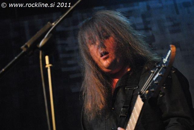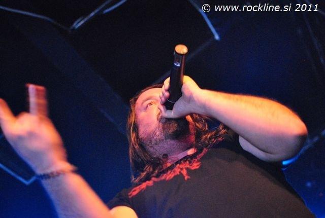 Nato pa je bil vendarle čas, da oder okupirajo prvi težkopričakovani co-headlinerji, seattleski težkokategorniki Nevermore. Zasedbi, ki je zrasla na pogorišču kultnih Sanctuary se je z novo ploščo The Obsidian Conspiracy končno uspelo predstaviti širšemu občinstvu, pa čeprav menim, da Nevermore še vedno ostajajo najboljša izbira petičnih sladokuscev, ki točno vedo kdo lahko ustreže njihovim visokim zahtevam po možgane talečem metalu. Nevermore so se na krilih uspeha nove plošče po šestih letih vrnili na mesto zločina, kjer so leta 2005 pustili obrise trupel po Cvetličarni potem, ko so spektakularno predstavili takratni album This Godless Endeavor. Seattlečani, ki so v začetku burnih devetdesetih dvignili velik sredinec kravatarskim živinam, ki so jim dejali, da so od njih pričakovali nekaj rahlo bolj grungerskega, so kot tsunami udarili z začetno Inside Four Walls. Klavstrofobični rušilec, ki govori o prijatelju skupine, ki se je znašel za zapahi zaradi posedovanja napačnih substanc, je na noge dvignil publiko. Ta se je po katatoničnem učinku Psychotic Waltz hipoma zbudila in udi so leteli na vse strani. Nevermore so dokazali, da so še vedno v vrhunski formi! Warrel Dane, ki je v preteklih festivalskih nastopih (Metalcampu npr.) nekoliko trpel zaradi težav z grlom in posledično ponudil slabše vokalne predstave, je tokrat upravičil ime enega najboljših vokalistov ta hip. Dane, ki se je izučil celo za opernega pevca je blesteče nizal fenomenalne linije in do popolnosti predstavil s čustvi nabite vokale, ki temeljijo na njegovih genialnih besedilih. Rahlo pomoč je Dane potreboval le pri najvišjih falzetnih krikih, ko je pomoč prejel s strani mešalke, sicer pa tako svežega in prepričljivega Warrela nismo slišali že lep čas. Poleg Warrela je bistvo Nevermore zgrajeno okrog briljantnih linij genialnega kitarskega maga Jeffa Loomisa, brez njegovih “out of the box” inovativnih riffov in spektakularnih, sapojemajočih solaž si tega benda preprosto ne da predstavljati. Novi session kitarist Attila Vörös je spretno slalomiral po Jeffovih linijah in dokazal, da si bo mesto rednega člana benda povsem zaslužil. Mladi 24 letnik pa na odru vidno uživa, saj so se mu izpolnile sanje igrati v svojem najljubšem bendu, kar je jasno vidno po širokem nasmehu, ki se Attili ne izbriše z obraza vse do konca koncerta. Tudi brez polne in mogočne ritem sekcije Nevermore ne bi bili to kar so in nori bobnar Van Williams je pokazal kako se tolče po bateriji. Van je gotovo eden bolj inovativnih bobnarjev ta hip, saj so njegovi prehodi premišljeni in polni odličnih idej. Le karizmatični basist Jim Sheppard je tokrat manjkal, saj se znova spopada z zdravstvenimi težavami – odkrili so mu namreč tumor v možganih, a se je ta k sreči izkazal za benignega in Jim po operaciji že uspešno okreva. Jima je suvereno in samozavestno nadomestila Dagna Silesia, ki sicer basira v solo bendu Warrela Danea, prav zaradi dobrega poznanstva pa si jo je Warrel tudi večkrat privoščil, hehe. Nevermore so skozi štiri komade z novega albuma, ki v živo izpadejo hudičevo dobro, klasik Born, The Heart Collector in The River Dragon Has Come za vrhunec poskrbeli z neverjetnim deset minutnim epom This Godless Endeavor, mnogo mnogo prehitro pa zaključili z rušilnim, kataklizmičnim Enemies of Reality. Edini minus tokratnega nastopa Nevermore je resnično le njegova kratkost zaradi katere so bili primorani izpustiti mnogo biserov diskografije. A takole je čivkal že Poejev krokar: “Quath the Raven, ‘Nevemore’ … And my soul from out that shadow that lies floating on the floor Shall be lifted – nevermore!”
