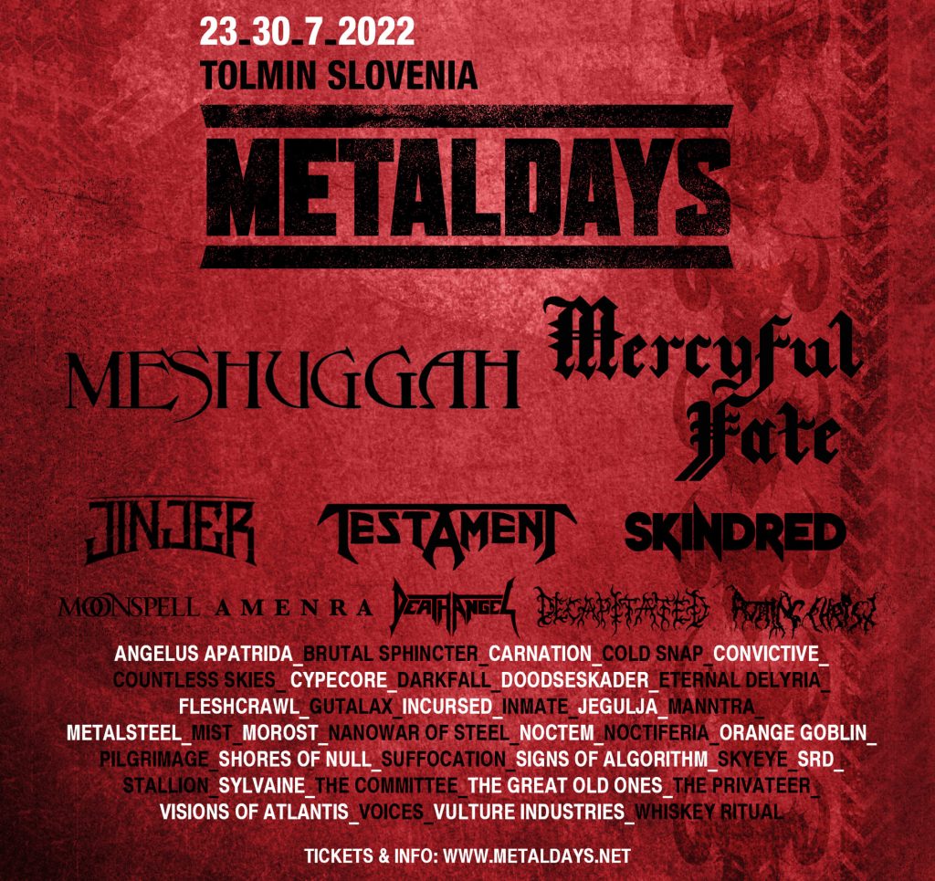 Organizator festivala Metaldays 2022 je razkril imena novih nastopajočih skupin. Med 30 potrjenimi skupinami je razkrit tudi nov headliner, in sicer bodo to švedski težkokategorniki Meshuggah.