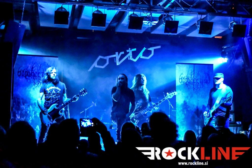 Težje pričakovani so bili, vsaj glede na odziv publike edini švedski predstavniki večera, October Tide, ki so leto že prepričali na Metaldays 2019, kjer so nastopili prvega dne festivala in dali lekcijo kvalitetnega death/doom metala. Tudi tokrat ni bilo nič drugače le, da so October Tide v intimnejši atmosferi prišli še do večjega izraza. Bend, ki ga sestavljajo izkušeni mački švedske scene, saj je med njihovim rezimejem moč najti imena kot so Katatonia, Dellamorte, Centinex in Demonical (za slednje je vokalist Alexander Högbom posnel zelo dobro aktualno ploščo Chaos Manifesto). Navedena imena dajo vedeti, da so Švedi podkovani predvsem v death metalu, ki pa ga znajo v October Tide tudi konkretno upočasniti in ubiti s počasnejšimi ritmi. October Tide je zvočno mogoče primerjati z zgodnjo Katatonio ali čikaškimi mračnjaki Novembers Doom (ki bi, mesecu primerno, še bolj pasali v ta paket), a imajo dovolj lastnega jaza, da prehudih podobnosti le ni. October Tide v prvo vrsto tako dajejo agresijo in brutalnost, saj čistih vokalov v njihovi godbi ni najti, prav tako pa svojim koreninam primerno, velik poudarek dajejo predvsem svoji death metal strani. Med epske rife in Alexandrov brutalen growl October Tide za šalo umestijo celo blast beate, zloveščo atmosfero pa gradijo na masivnih in monolitnih rifih, ki so naravnost pasali na turobno, deževno ljubljansko vzdušje, kar je le podkrepila zaključna Adoring Ashes.