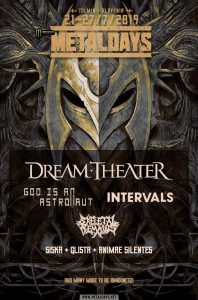 Za festival Metaldays 2019, ki se bo odvijal med 21. in 27. julijem 2019, so znani novi nastopajoči. Kot headliner dneva se vračajo Dream Theater. Ob njih so potrjeni še God Is An Astrounaut, Intervals, Skeletal Remains, Glista, Siska, Animae Silentes.