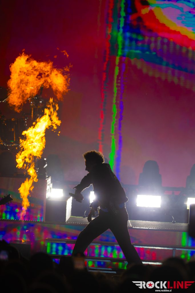 Ob točno 21:30 pa se je pričelo zares. Papa Roach zavzamejo oder in se na njem ponosno smehljajo, ker dobro vedo, da jim do živega ne more prav noben ‘iztrebljevalec golazni’. Nemudoma so v svojem elementu in show je res spektakularen. Luči dovršene kot pri kakšni znani ameriški POP zvezdi, ognja pa skorajda več kot pri nastopu Rammsteinov. Morski zrak frontmanu Jacobyju Shaddixu očitno doatno pomaga pri ekspozeju energičnosti. Tudi nazadnje na Dunaju sicer ni stal kot kip, vendar ga je v Opatiji odbijalo kot žogico v profesionalnem pingpong turnirju.