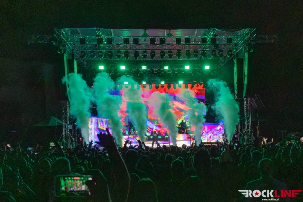 Ob točno 21:30 pa se je pričelo zares. Papa Roach zavzamejo oder in se na njem ponosno smehljajo, ker dobro vedo, da jim do živega ne more prav noben ‘iztrebljevalec golazni’. Nemudoma so v svojem elementu in show je res spektakularen. Luči dovršene kot pri kakšni znani ameriški POP zvezdi, ognja pa skorajda več kot pri nastopu Rammsteinov. Morski zrak frontmanu Jacobyju Shaddixu očitno doatno pomaga pri ekspozeju energičnosti. Tudi nazadnje na Dunaju sicer ni stal kot kip, vendar ga je v Opatiji odbijalo kot žogico v profesionalnem pingpong turnirju.