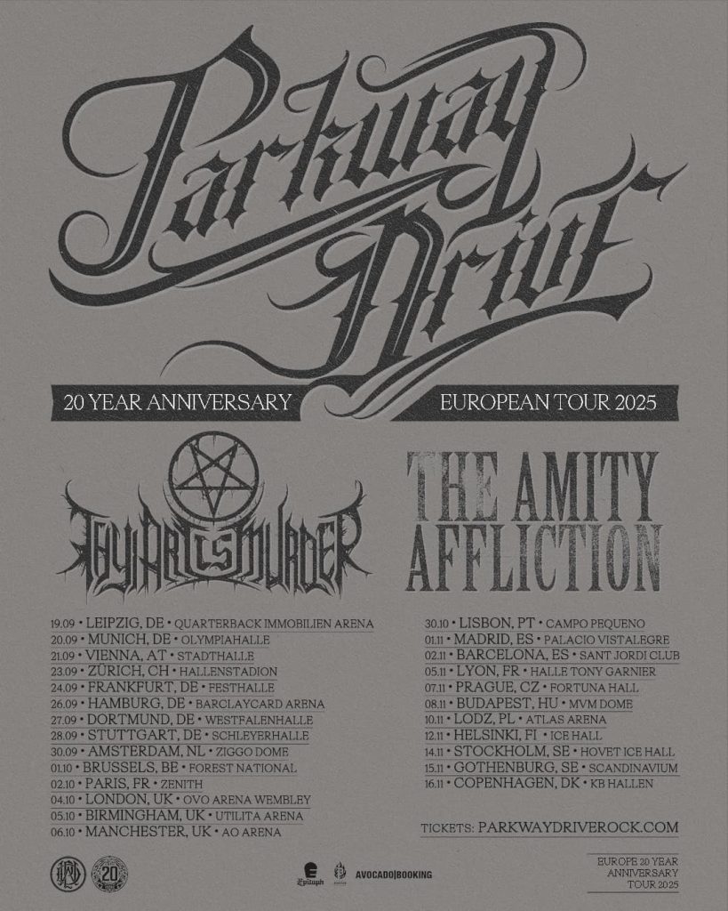 Ta napoved Winstona McCalla bo verjetno mnogim oboževalcem dovolj, da si te turneje ne bodo želeli zamuditi. Če pa to še ni dovolj, vas bodo morda prepričali spremljevalni nastopi. Skupaj s Parkway Drive bosta nastopili tudi Thy Art Is Murder in The Amity Affliction. Obe avstralski skupini sta v zadnjih letih navdušili občinstvo po vsej Evropi z močnimi živimi nastopi. Nedvomno nas čaka spektakel iz Avstralije!