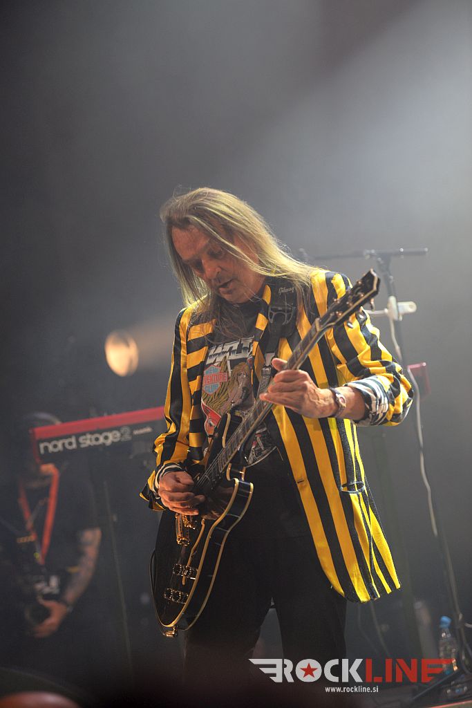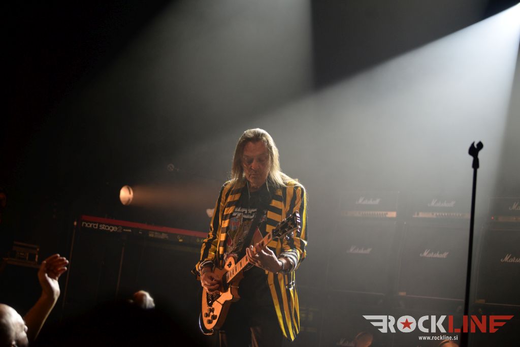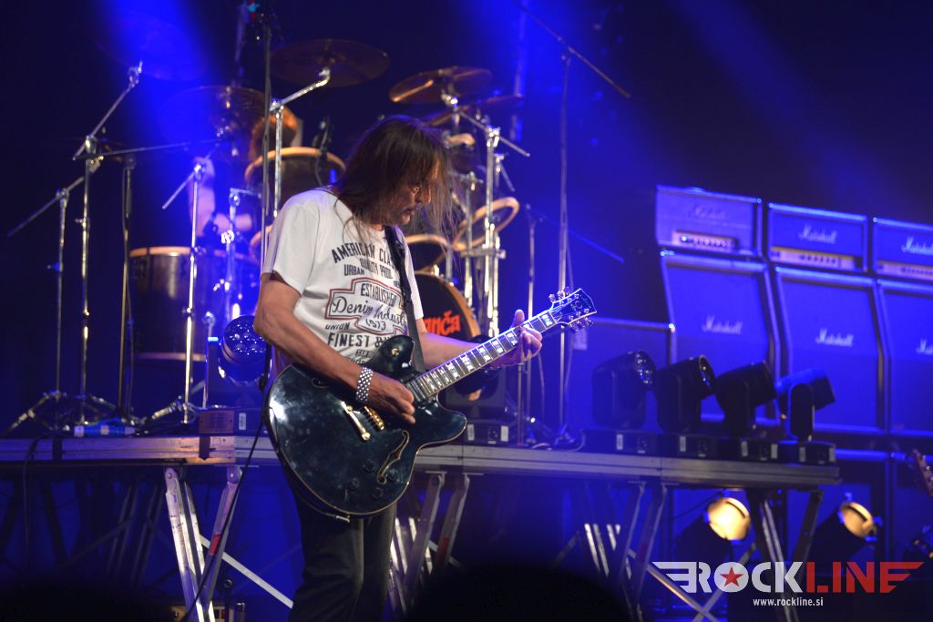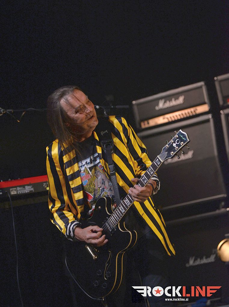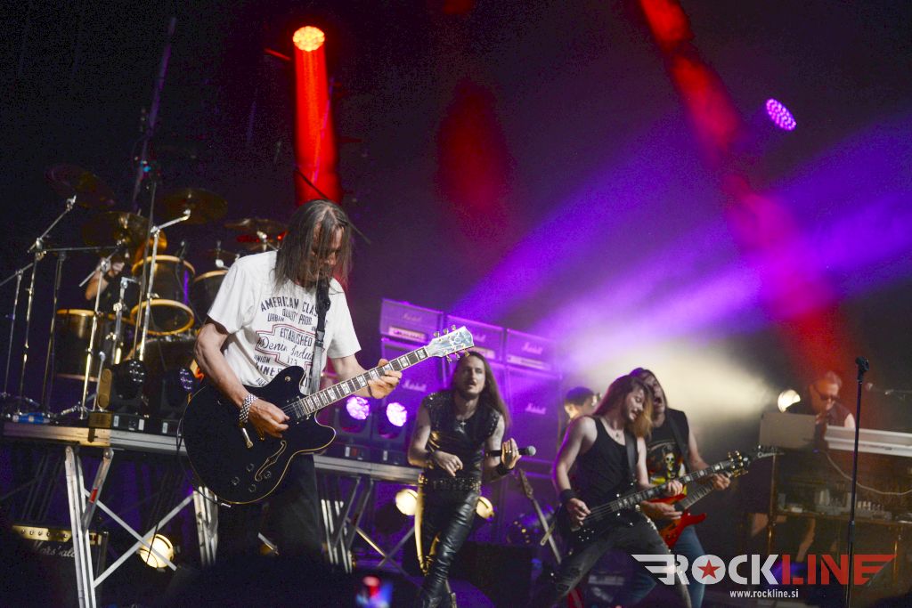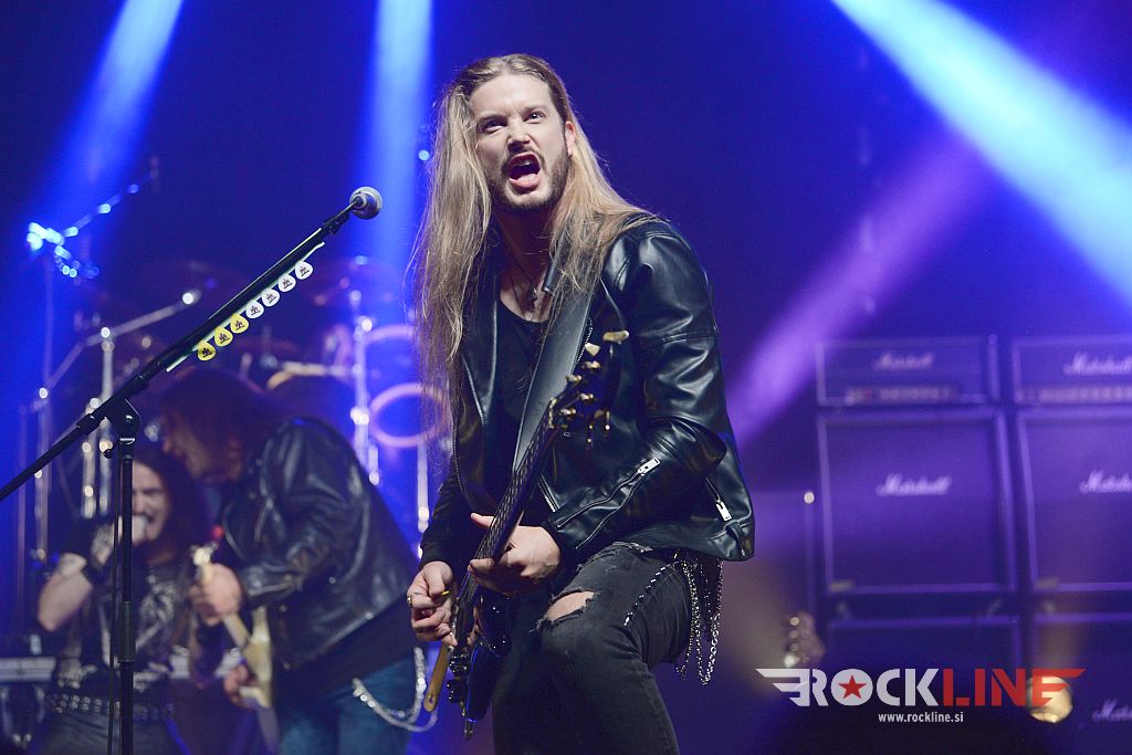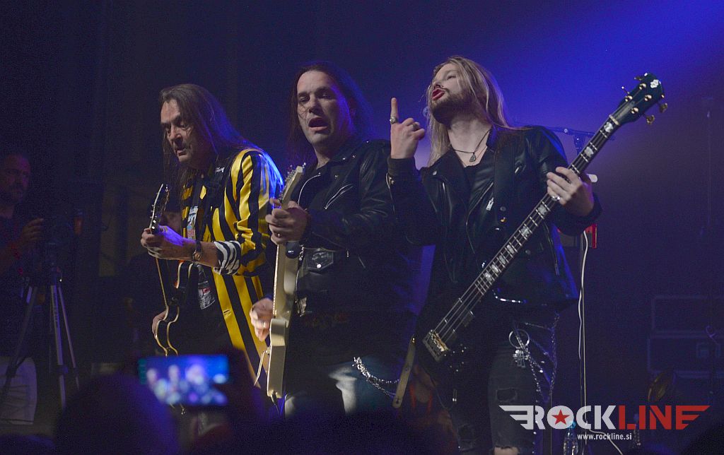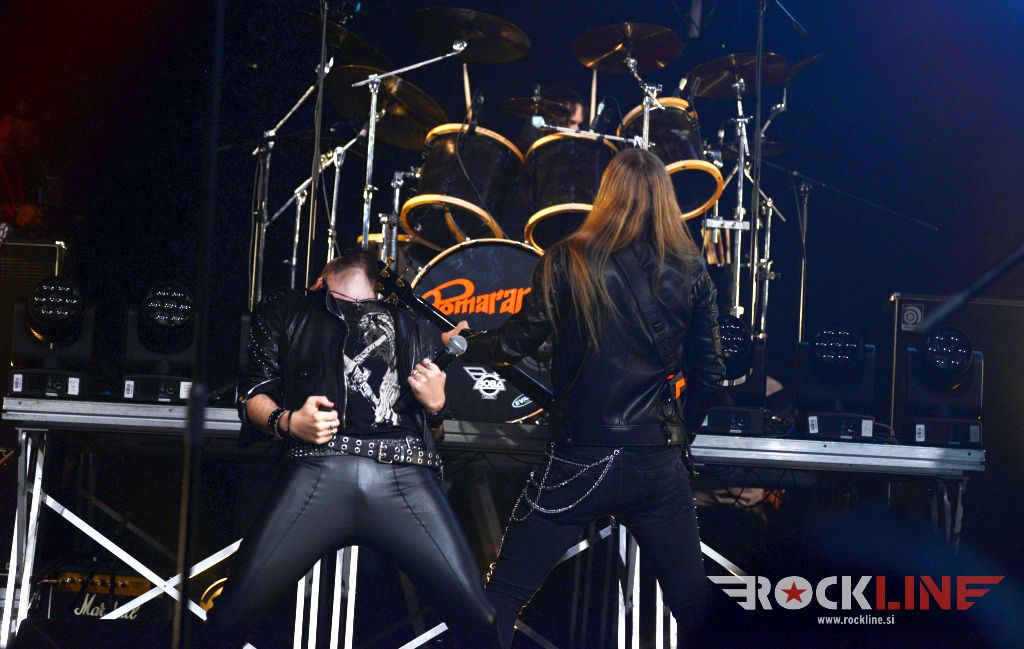 Velik oder in končno, ampak res končno, koncert skupine na prizorišču s karakteristikami, ki so generirale zelo dober zvok. Od koncerta Metalsteel dobiš tako rekoč vse. Vse po kar prideš. V prvi vrsti izvrstno uigranost in pravo dozo visoko oktanskega izgorevanja iz nasršeno grmečega kolesja te suverene mašinerije. Ob podpori zgledno natrpanega prizorišča (mnogi obiskovalci so se sicer zunaj še vedno raje posvečali dialogom z alkoholnimi derivati). Tričetrt ure kot bi mignil! Beni nasršen, odličen na vokalu. S svojo kitaro, soliranjem in nasploh pozo deluje kot kakšen Kai Hansen s preloma milenijev skupine Gamma Ray. Z Rokom v navezi, kitaristoma prav nič ne uide. Tu je spretni bas kitarski žongler Matej in seveda vse tiste topovske salve ‘snare’ granat s strani neomajnega treskanja Daše. Skupina je neverjetno izkušena in točno zna, razume in ve kako izkoristiti danosti tako prostranega odra. Kar lepa skupina privržencev je sodelovala tudi med briljantno balado studijskega prvenca »Usoda« – to je seveda skladba Topla je smrt, ki ji je v prvem delu delala družbo še ena klasika prvenca Novi svet. Bend je sklenil svoj nastop gromovito! S himno Heavy Metal Is Our Religion. Tu so bile še apokaliptična power baladna The End Of The World, pa dve ‘strupenjači’ v This is Your Revelation in Narcissus, nadalje Forsaken By The Gods, pa nasršena otvoritev nastopa z Becoming Human – slednji obe iz najnovejšega albuma »Forsaken By The Gods« (2021, RockLine recenzija). Peklenskih rifov nikakor ni primanjkovalo. Tu so bile še: “Taste The Sin” (2005) klasika Trapped In the Nightmare, pa nova Spomenik, ki dokazuje, da skupini tudi po 25. letih delovanja ne primanjkuje sape! Metalsteel so odigrali tudi The Trip – enega vrhuncev albuma “Entertainment” (2010). Bomba torej! V čelo blesavo! S finalnim Rokovim bičanjem svojega Gibsona!