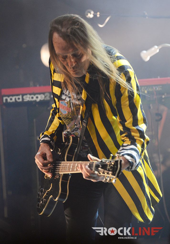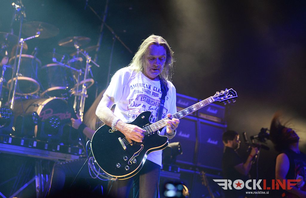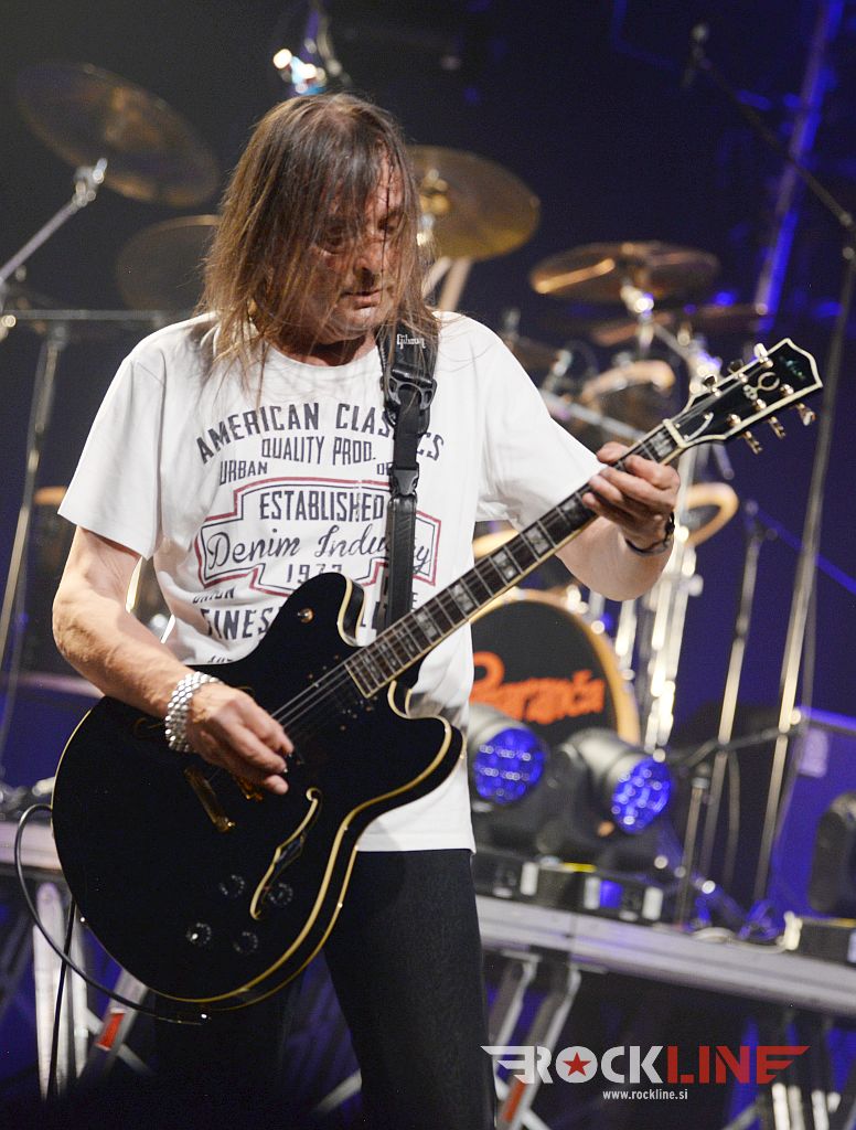 In potem je bil tisti ‘tip’ – hud kitarist. Edi Žorž. Nenapovedani šesti konjenik! Skrbno varovana skrivnost. Kdor malo pobrska po zgodovini Googla, bo hitro odkril, da je mož v preteklosti igral s Fosgen (gledali smo jih 14. 7. 2007 v Velikem Ubeljskem pred Pink Cream 69 in mdr. Divljimi jagodami – Edi je že takrat ‘zažigal’ – berite linkan report). Še bolj pa postane njegova integracija logična izbira, saj deluje Edi v ‘posvetitveni’ (tribute to) skupini Madbringer, ki preigrava? Pomarančo seveda. A zakaj so bili vsi tiho, da bodo Pomaranča nastopili kot sekstet ter bili pred koncertom oglaševani in napovedovani kot kvintet, so vprašanja za drug naslov. Jasno je bilo od prvega dne ‘reuniona’, da je integracija dodatnega kitarista smiselna in dobrodošla. To niso več osemdeseta in vprašanje je koliko je Mijo dejansko držal kitaro in vadil tudi v času, ko ga vrsto let odri niso videli.