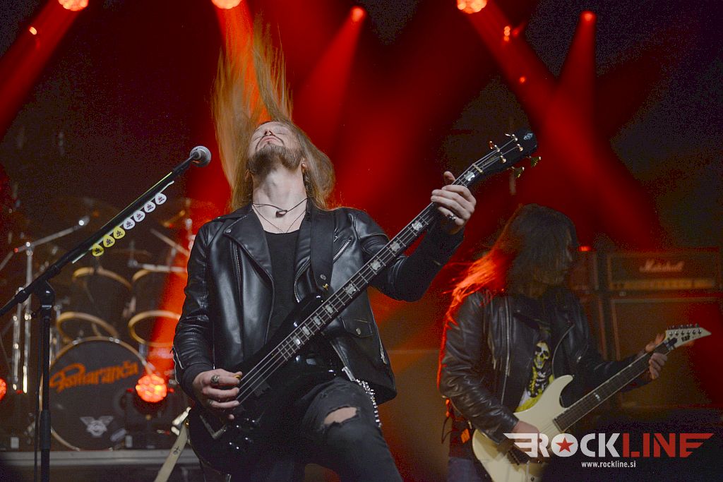 Pomaranča! Ostro oblečeni možje so se pojavili na odru petnajst minut pred deseto. Močno pogrešani Mijo – v vseh ozirih slovenska rock in metal legenda, v bleščeče progastem suknjiču, ki bi mu ga sunil če bi lahko tudi Michael Sweet iz Stryper. Mijo je bil najbolj ‘glam’ tega večera! Na nasprotni strani in skrajno desno Tomaž Žontar, drugi član originalne postave. Na podestu s klaviaturami. Jasno in razločno izpostavljen! Potem pa vsi ti vročekrvni žrebci silovitega zagona in žara, ki so si na slovenskem, pa tudi mednarodnem prizorišču metala, na podlagi reputacije in talentov, že izborili konkretno prepoznavnost. Začenši z basistom Tilnom Hudrapom, ki ga zelo dobro pozna svet metala na globalni ravni, tu je izkušeni bobnar Matjaž Winkler (mdr. Shutdown, Stare Device, Keller) – dvignjen visoko na orjaškem podestu, na vokalu pa osupljivi Matic Nareks, ki je pomagal Pomaranči že leta 2019 v Laškem…. Usnje, bodice, verige, sončna očala, rožljanje, zvončkljanje, … Metal!
