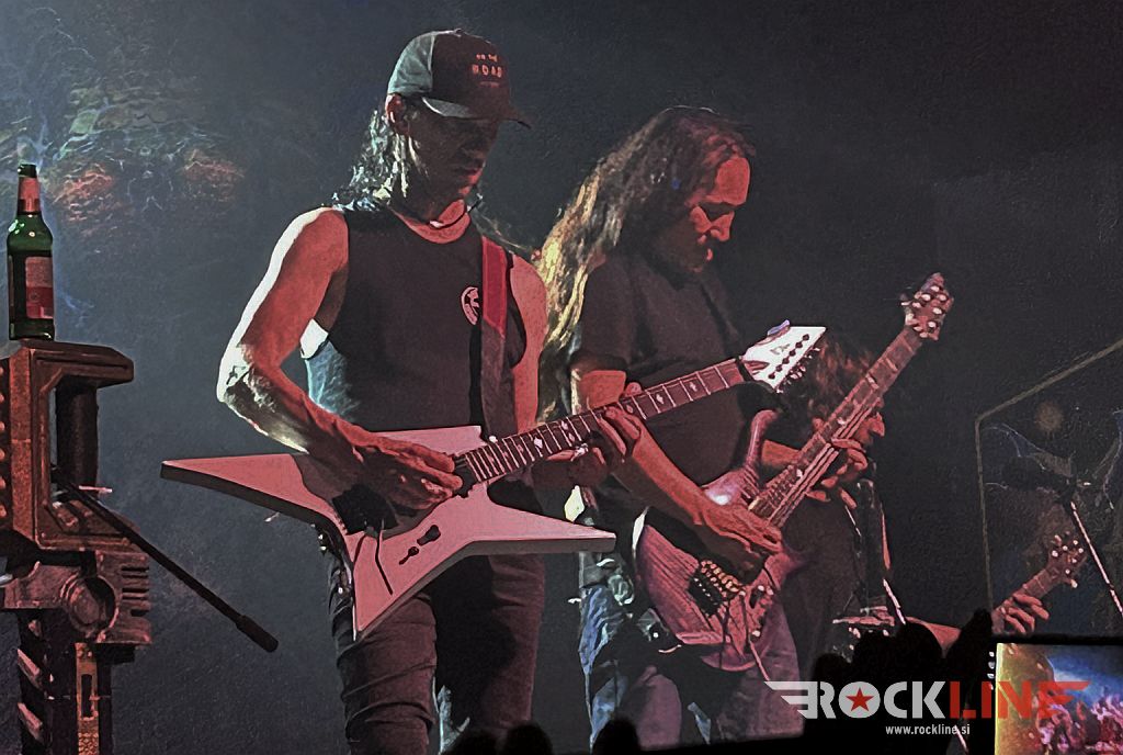 Bend je bil v izvrstni formi in odlično razpoložen, prav tako je vse od sebe dala publika. Tukaj bi rad izpostavil dva dogodka. Med komadom Space Marine Corp je en od roadijev delal sklece na odru, prav tako pa en model v publiki ob spremljavi čisto pravega “circle pita”. Noro! Druga zadeva, ki sem jo najavil v podnaslovu, pa mi res ne gre iz glave. Publika je po rednem delu veselo skandirala “svirajte pićke!” Ne “hoćemo još” al pa “cugabe”. Ne. Na srečo bend teh besed ni razumel, resnično mi ni jasno, kako se zagrebški publiki to zdi zabavno ali celo smešno. Katastrofa!