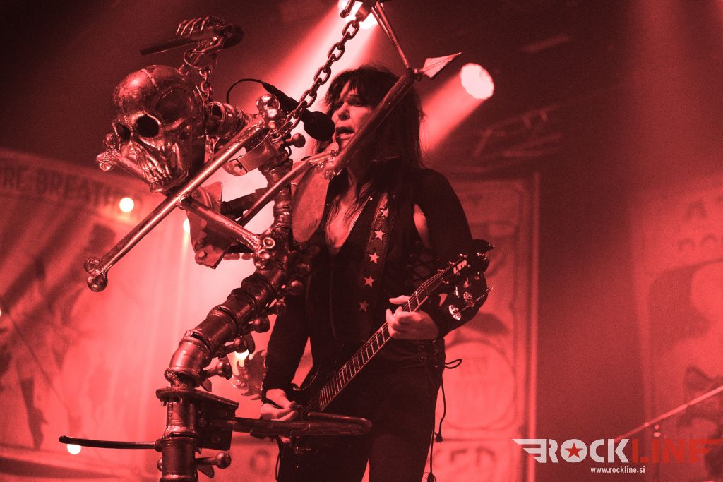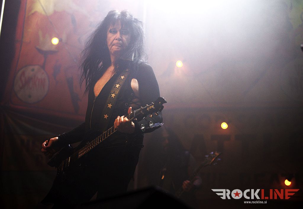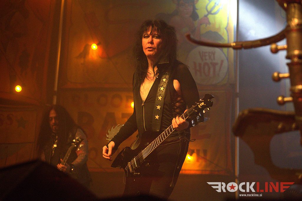 Na Blackiejevi silhueti je bilo najprej opaziti, da se je možakar krepko spravil v formo v času od zadnjega ljubljanskega koncerta (reportaža tukaj). Presenetljivo vitek in okreten in v precej kvalitetni vokalni formi je brez pretirane komunikacije s publiko obvladoval prizorišče. Selekcija skladbic (pogledate so jo lahko tukaj) je bila glede na sestavo in klasično dolžino W.A.S.P. koncerta skoraj popolna. Osebno mi gredo sicer venčki na organ, ampak šef se tega oklepa že daljše obdobje, tako da človek nima kaj. Model ve, kaj dela, zato nismo slišali nobene zadeve, starejše od leta 1989 (album The Headless Children).