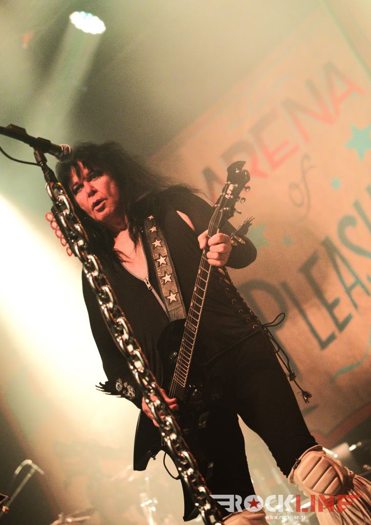 Še huje, zamudili smo prve tri komade in pol. V prijetno napolnjen Media Center smo uleteli na sredini B.A.D. in takoj padli v headbangersko norišnico, ki nam jo je pripravil Blackie s tovarišijo. Nisn biu jezen (samo me je razpizdilo), da sem zamudil The Flame, ki mi je dejansko naj komad s plate. Ampak časa za objokovanje ni bilo, zato sem takoj padel v vročico leta 1984, ko je surovi prvi album grozečih os razparal LA glam sceno po dolgem in počez. Zadeva je namreč krepko bolj heavy od sodobnikov, surova energija in neposredna produkcija, da ne omenjam Blackiejevega monstruoznega vokala, pa je zavzela srca in ušesne bobniče vseh nas, ki smo v glam revoluciji pogrešali malce težje zvoke.
