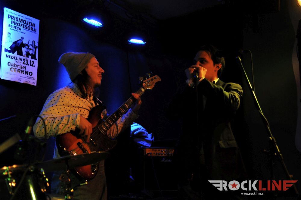 Kaj lepšega, kot skleniti koncertno leto v enem najbolj prijetnih koncertnih prizorišč, v družbi ene izmed najbolj vročih slovenskih skupin ta hip. Cerkno, bar Gabrijel in? Prismojeni profesorji bluesa seveda. Letos so izdali svoj drugi studijski album »Wacky Blues Professors«, ki potrjuje, da ves vesoljski prah, ki so ga fantje s svojim nenadnim prodorom, izdajo vrhunskega prvenca »Family« in vsemu kar je temu sledilo, zavrtinčili, nikakor ni bil slučaj. Bend nenehno igra. Če le more. In se razdaja. Izdal je tudi dvojni koncertni album. Ob vsem tem pa ohranja zdravo in čvrsto vzravnano hojo na poti samoevolucije, za čimer stoji neupogljiva artistična iskrenost vseh fantov tega izjemnega kvarteta.