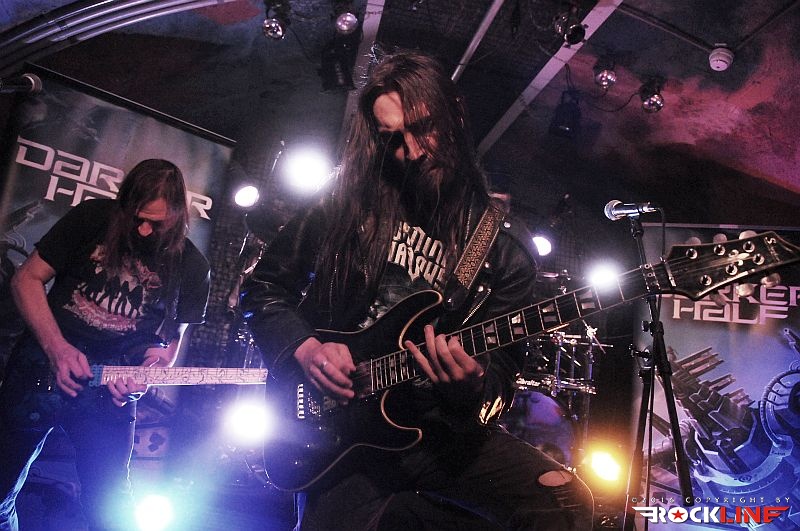 Ura je odbila osem zvečer, na oder stopijo avstralski heavy metal revitalisti Darker Half. Kvartet iz Sydneya, ki ga zastopajo Vo Simpson (vokal, kitara), Simon Hamilton (bas kitara), Dom Simpson (bobni) in Jimmy Lardner-Brown (kitara), nikakor ni »muhav«. Gre za skupino s konkretnimi izkušnjami, pa čeprav so vsaj v Evropi za enkrat manj znano ime na metalski sceni. V preteklosti so odre namreč delili s Queensryche, Edguy, Sonata Arctica, Dark Funeral, Children of Bodom, Nightwish, Accept, Helloween, Stratovarius in še kom, prav tako pa so v vlogi spremljevalne skupine nudili usluge začasni menjavi Roba Halforda pri Judas Priest Timu »Ripperju« Owensu, ter dvema nekdanjima Maiden vokalistoma Blaze Bayleyu ter seveda »pikantno rogati legendi s problemi« Paulu »Puta Madre Softić« Di’Annu. Bend ima za seboj tri studijske albume, vendar je šele aktualni, to je »Never Surrender«, prvi, ki je izšel tudi na evropskem trgu. V lanskem letu so fantje izdali tudi EP »Classified«, njihova pridnost in prizadevnost, pa jih je končno prinesle tudi pred oči bližnje evropske koncertne javnosti. Bend je zelo dobro uigran. Tudi pevski karakter Vo Simmonsa je bil silno dopadljiv. Visok, čist izdelan, dominanten vokal. Ob njegovem izvrstnem soliranju. Bend je bil resno angažiran in tudi Vo je pridno ogovarjal salzburško občinstvo. Lep power metal z odločno muzikalično noto in z kupom starošolskih fines, prijetna ubranost in suverenost pri rokovanju z vsem česar so se lotili. Nemara je bil le vokal nekoliko preveč tiho naravnan v zvočni sliki, sicer pa so Darker Half dostavili prijetno presenečenje za uvod v koncertni večer.