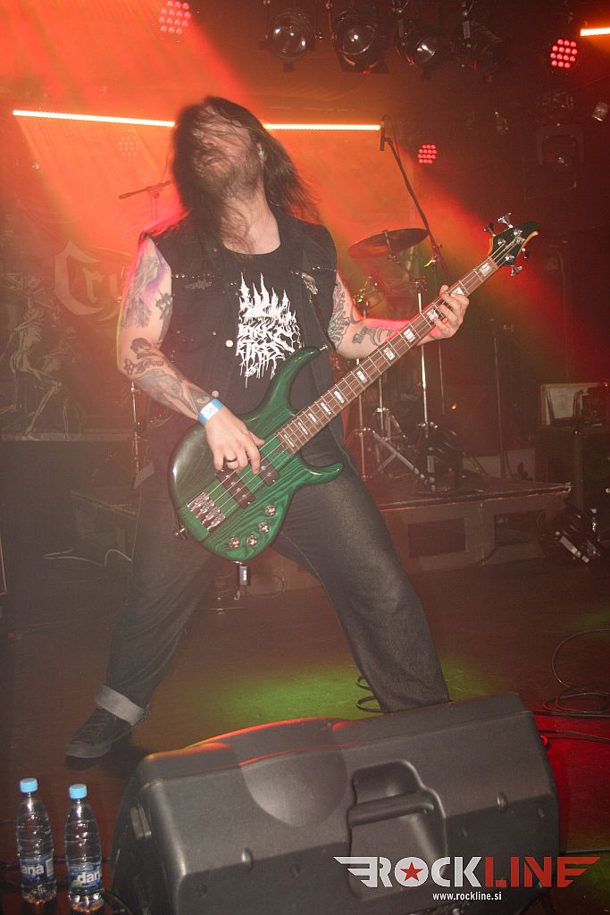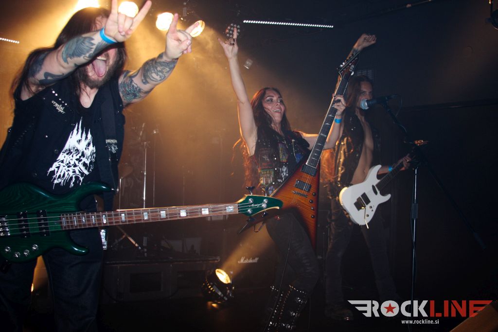 Crystal Viper s šefico in edino stalno članico, vitalno Marto Gabriel, so bili na vrsti naslednji. Opazno odebeljen zvok jim je naredil veliko uslugo, ko so se sprehajali med kompozicijami iz (predvidevam) celotne kariere. Bend je bil kljub nedavnim spremembam v postavi lepo uigran, s svojimi standardnimi Power Metal prijemi so lepo animirali publiko. Marta ima zelo močan in prepričljiv vokal, ki je krepko zarezal v ušesne bobniče. Pravzaprav pa je šov ukradel lepi kitarist Giuseppe, ki je s čupo pometel prve vrste obiskovalcev, njegove veščine na kitari pa tudi niso za odmet. Moram priznati, da sem bil na gade precej nepripravljen ampak melodični in udarni Power Metal je vedno balzam za moja ušesa. Uspešno!