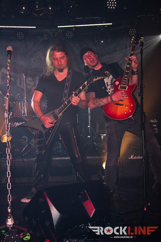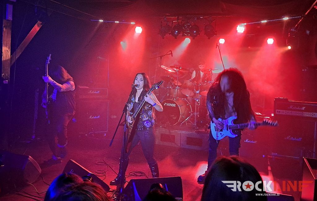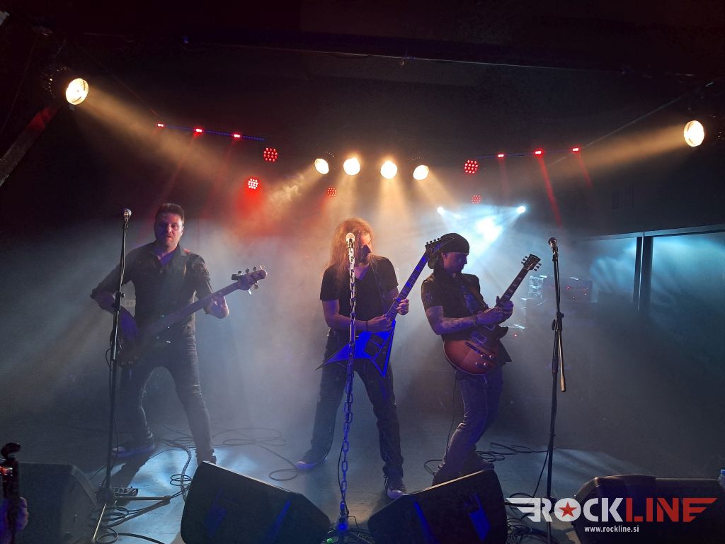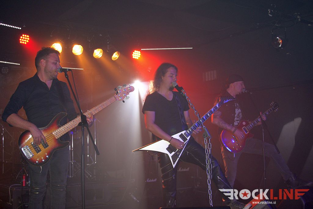 Napovedano metalsko veselico so odprli lokalci in legende slovenskega klenega, pravega, moškega (oprosti, Daša) Heavy Metala, Metalsteel. Svoje pol ure so izkoristili maksimalno, s par šalami med komadi, drugače pa je bil to čistokrven metalski šus v glavo. Nisem štel odigranih skladb, po moje nekje med šest in sedem, zaključni trio Spomenik, Novi svet in Heavy Metal Is Our Religion pa je razmigal še zadnje zadrteže. Sedi, pet!