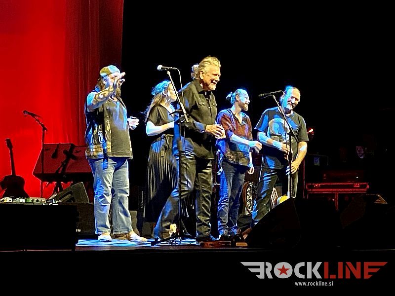 Plant je skozi koncert ob odlični vokalni predstavi, podprti z briljantno uigranostjo ekipe ter vokalno navezo dueta s Suzi Dian (skozi cel koncert, še posebej pa je to prihajalo do izraza v trenutkih kot so bili omenjena tradicionalna The Cuckoo, tradicionalna I Roved Out, pa Moby Grapeova It’s A Beautiful Day Today), pridobil posebno naklonjenost občinstva, saj je razdrl v premorih med točkami nekaj žaltavih, ki so med občinstvom sprožale salve smeha. Energija je bila odlična, Plant pa je vse to kronal z izvrstnim dnevnim razpoloženjem. Ne glede na to, da je njegov vokal postal z leti konkretno znižan (a ‘odebeljen’), pa ostaja ekspresivna moč njegovega unikata osupljiva. Še vedno se ti ob njem naježi koža! Čutnost, pretanjenost, predajanje magiji. Vibraciji univerzuma da te pelje, vodi. Plant ni skrival te dimenzije. Še posebej ne v momentih, ki so se izdatno opirali na vrednote tradicionalne glasbe. Vse od keltskih zasunov, to je vrednot Irske in Valižanske glasbe, pa do trenutkov, ki so segali do korenin bluesa, kot je bila gospelovska pridiga Satan, Your Kingdom Must Come Down. Tej je v izhodnem delu skupina dodala slikovito integracijo dela še ene tradicionalne skladbe In My Time Of Dying, ki so jo leta 1975 priredili že Led Zeppelin za album “Physical Graffiti”. Takrat se človek uščipne: “Ne, ne sanjam. Možakar nas celo ‘draži’ z Led Zeppelini.” Napev “Jesus Make Up My Dying Bed” in Blind Willie Johnson sta tu. Izvrsten trik.