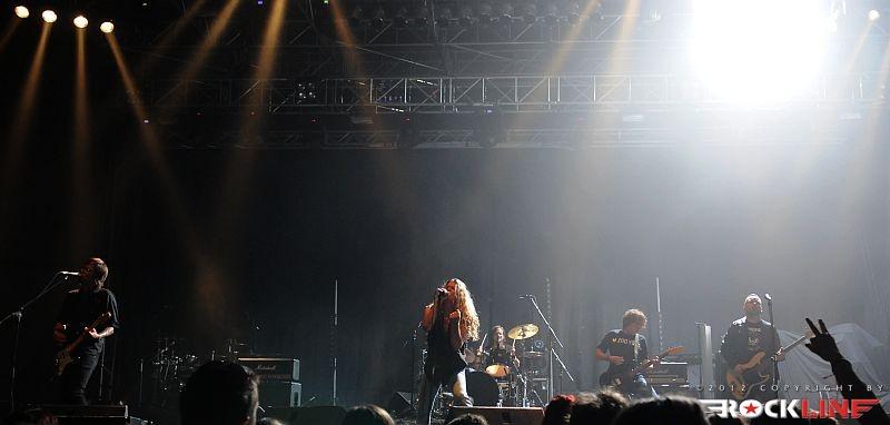 Skupina, ki smo jo izbirčneži najbolj mrzlično pričakovali na seznamu nastopajočih skupin, pa so gotovo bili ameriški hard rockerji Warrior Soui. To je legendarna zasedba, ki je pričela z delovanjem davnega leta 1987 in izdala studijski prvenec leta 1990! Njen vodja, prva uporniška duša, pogonski stroj, brez katerega ni skupine, ostaja seveda neukročeni vokalist Kory Clarke , družbo pa mu v današnji inkarnaciji skupine delajo še kitarista Johnny H in Rille Lundell, bobnar Freddie Cocker Kvarnebrink in basist Danny Engström. Z uperjenim sredincem leve roke visoko v zrak, aroganco predrznosti izjemne teatralne šov predstave na odru, je Kory hipoma izzval občinstvo, ki se je v stažu starost sukalo tam nekje med 17. in 21. let! V tem občinstvu le redko kdo pozna še kaj starejšega od The Killers in/ali Coldplay. Publika je dovilka nepričakovano serviran bombonček, ob katerem pa nikakor ni kazala znakov ravnodušja, pač pa ga pričela navdušeno lizati. Predstavo klasične hard rock zasedbe, z močno integracijo punk rock vektorja je delovala na noč prevzetno. »V obraz« odbrcano, iz polnega krvožilja in jajc. Glavna stvar pri izredni kratki, a z dinamično voltažo prevreti predstavi je seveda vokal Koryja Clarkea. Ta še vedno deluje, kot bi se Koryju nekoč davno tega zataknila cirkularna žaga v grlu. Surovo šmirkav, kot praskanje najbolj grobe stružnice, v polni ekstazi! S polnim pristopom in zaletom. Prav tako je reagiral preostanek zasedbe, v katetri je zlasti izstopa blago ekstravagantni kitarist švedskih korenin Rille Lundell v odrski poziciji na Koryjevi skrajni desni. Ta je vihtel svojo kitaro v najrazličnejših pozah odrskih akrobacij. Set lista je bila odlična. Skladbe povzete iz prvih treh Warrior Soul albumov, vanjo pa vmešana Fuck the Pigs iz zadnjega albuma Destroy The War Machine«, ki je izšel leta 2009. Nastop Warrior Soul je bilo absolutno sladostrastje za obubožano slovensko glasbeno sceno, kar se koncertov pravih, (v osemdesetih) »klasično urjenih«, hard rock zasedb tiče. Poleg tega je šlo za enega redkih nastopov skupine v Evropi za letošnje leto. Zasedba je hipoma opravičila visoka pričakovanja pred nastopom , to pa je potrdil val visoko odobravajočih reakcij s strani publike, za katero so bili Warrior Soul še pred nastopom absolutna glasbena neznanka. Skupina bojda pripravlja jesensko samostojno turnejo po Evropi. Upajmo, da se njej oglasijo v bližini Slovenije, če že ne kar znova v Sloveniji. Skratka čestitke organizatorju, da je pokazal izdatno mero domišljije pri snovanju seznama nastopajočih na festivalu in polno presenetil z integracijo Warrior Soul. Še več takšnih potez v prihodnje si želimo!