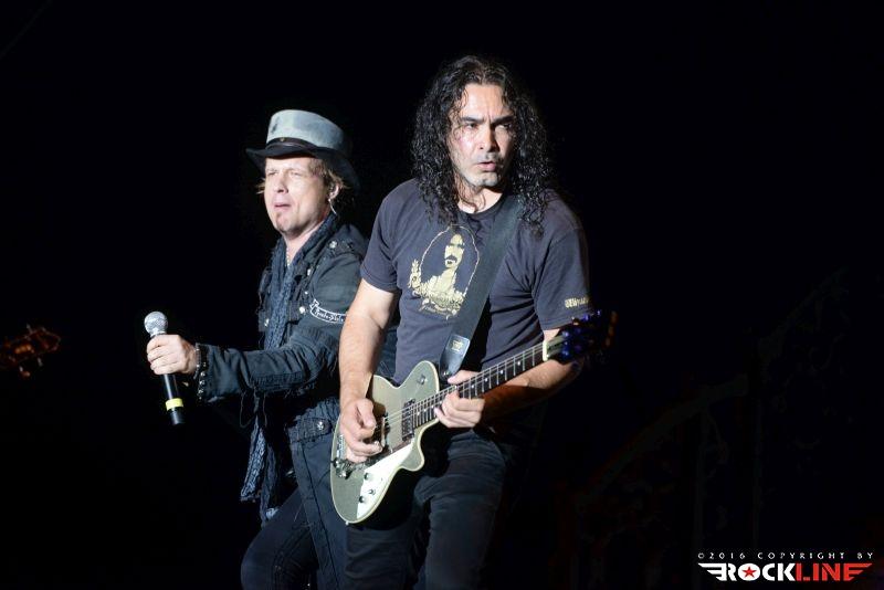 Posebno vrsto atrakcije ne le drugega dne, pač pa kar celotne izdaje festivala, pa so dostavili s svojim prihodom znameniti ameriški rockerji Blue Öyster Cult. Le ti nastopajo po letu 2003, ko so v družbi Uriah Heep opravili, vsled promocije takrat aktualnega albuma »The Curse of Hidden Mirror«, zadnjo omembe vredno turnejo v Evropi, po stari evropski celini danes skorajda izjemoma. Le tu in tam na kakšnem izmed poletnih evropskih festivalov. Vendar so v letošnjem poletju zložili kar nekaj pojavljanj na evropskih festivalskih odrih, kar je hvale vredno. Njihov nastop na festivalu Rock of Ages je veljal za absolutno popestritev progama. Blue Öyster Cult zastopata v današnji postavi le še dva originalna člana. K sreči sta to tudi tista člana, ki opravljata vse vokalne funkcije. To sta hkrati tudi kitarista! Eric Bloom in seveda Donald Roeser, z akronimom »Buck Dharma«. Preostanek današnjega Blue Öyter Cult kvinteta zastopajo še malopoznani bobnar Jules Radino, prekaljeni basist Kasim Sulton (znan po sodelovanju v zasedbi Utopia) ter izvrstni multinstrumentalist Richie Castellano, ki je, glede na staž, tudi znatno mlajši glasbenik. V pričakovanju klasik torej! In tako je tudi bilo. Začenši z uvodno »Agents of Fortune« klasiko This Ain’t the Summer of Love, ki jo je nasledila Golden Age of Leather. V zvezi s slednjo se je uvodni verz z »Raise your can of beer on high« več kot izvrstno pridodal občemu festivalskemu razpoloženju! Bloom in Dharma ostajata vokala skupine, ki zadržujeta lesket posebne karizme glasbene edinstvenosti te skupine. Velika vokala. Z njima vred zadržujejo tudi Blue Öyster Cult vso izvedbeno kredibilnost na zrela leta delovanja. Bloom ostaja strupeno jezičen, ko jemlje verze. Mrkega, ledenega izraza. Vseskozi s črnimi očali na očeh. Buck Dharma se za razliko od kolege Blooma vseskozi nasmiha in vnaša na koncertno prizorišče veliko več dostopnosti in topline. Posebno odkritje je Richie Castellano. Ta se je od sramežljivega uvodnega »skrivanja« za klaviaturami (This Ain’t the Summer of Love) v zadnji tretjini koncerta dobesedno razstrelil na solo točki znotraj skladbe Then Came The Last Days of May. Ta, edina skladba vzeta iz studijskega prvenca skupine, je vsebovala posebej »razpotegnjen« srednji instrumentalni del, kjer je najprej briljiral s svojimi mojstrovinami Castellano, tega pa je v nadaljevanju seveda nasledil Buck Dharma. Slednji se je predhodno že solistično dodobra ogreval v izvedbi znamenitega instrumentala Buck’s Boogie. No izvedba tega solističnega duela med Castellanom in Buckom je sama po sebi pomenila enega koncertnih vrhuncev nastopa skupine. Blue Öyster Cult, znameniti agentje v črnem, konspiratorji in če ne kar zlobni strici rock’n’rolla, pa so pri vsem tem ostali blagi dolžniki. Na razpolago so namreč imeli uro in dvajset minut, zaigrali pa so manj kot uro dolg repertoar. Bend, ki je z izjemo ponarodele Burning For You in »Cultosaurus Erectus« bombončka Lips in the Hills, ostal glede osemdesetih velik dolžnik, je v repertoarju urezal še skladbe ODD’d on Life Itself, Me262, Harvest Moon (nepotrebna točka iz albuma »Heaven Forbid«, 1998), koncert pa sklenil s klasiko Godzilla ter obče pričakovano Don’t Fear the Reaper. Ob vsej profesionalnosti, ki so jo servirali veliki gospodje rock’n’rolla, se človek ni mogel znebiti občutka, da bi lahko skupina dostavila daljši koncert in z njim vred vsaj še tri, če ne štiri skladbe.