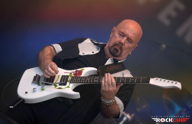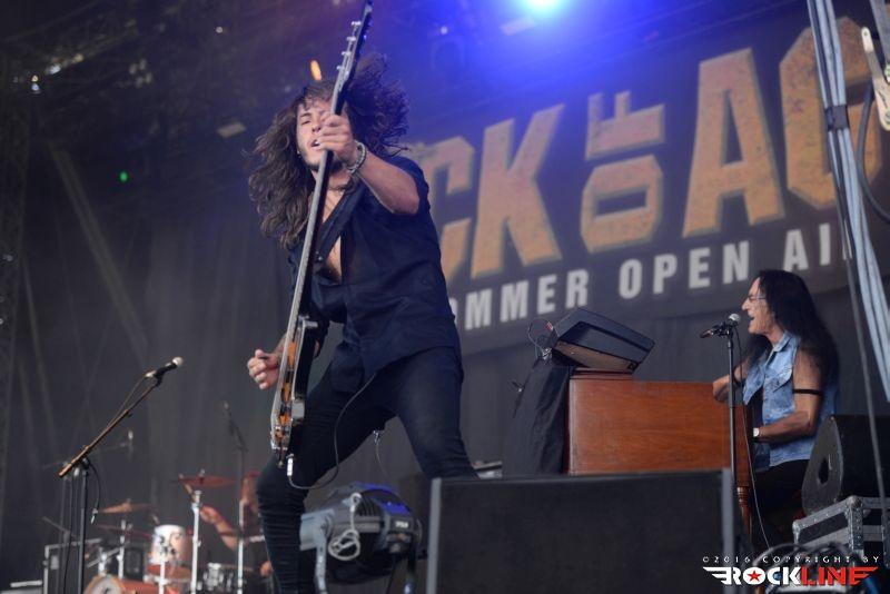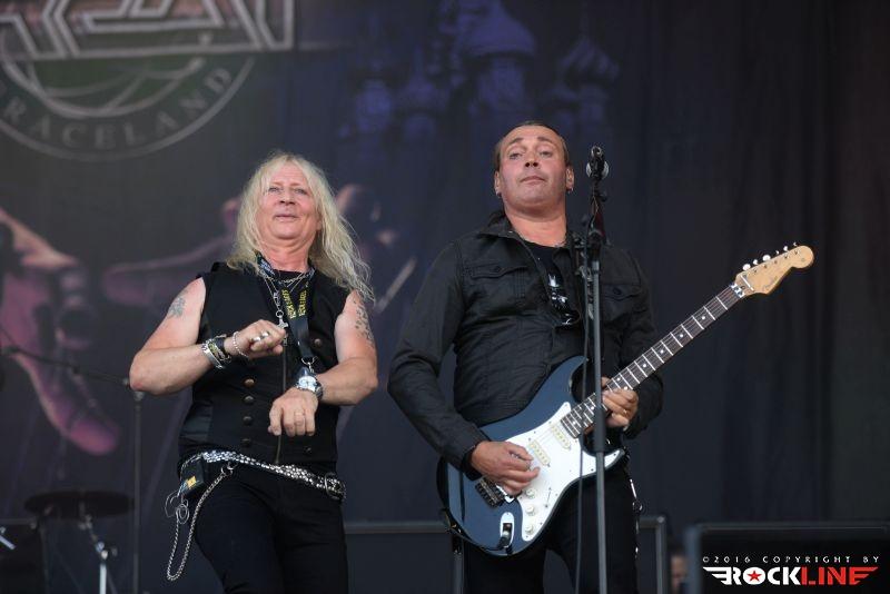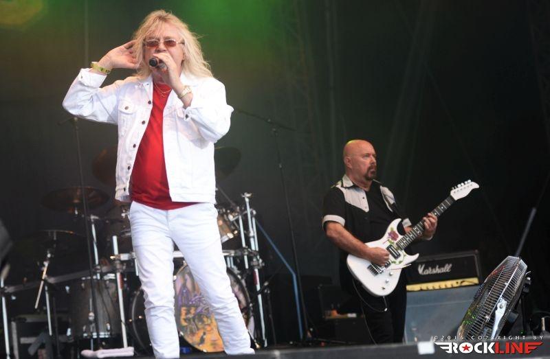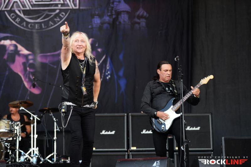 Na prizorišče je ekipa RockLine prispela ob pol drugi uri, ko so na odru stali veliki rock veterani Lucifer’s Friend. Gre za nemško-britansko navezo, ki je bila ustanovljena leta 1970 in je glavnino albumov izdala skozi sedemdeseta. Diskografijo je za dlje časa sklenil album »Mean Machine« leta 1981, potem so Lucifer’s Friend utonili v več letno dormanco ustvarjalne neaktivnosti. Prebujanje je napovedal album »The Awakening«, ki je vrsta kompilacije z novimi skladbami, izdan v lanskem letu. Pri Lucifer’s Friend delujejo danes trije originalni člani in sicer slavni vokalist John Lawton, ki je v drugi polovici sedemdesetih sodeloval na treh ploščah tudi kot vokalist Uriah Heep, nadalje basist Dieter Horns, ki ga je Lawton med koncertom predstavil kot »… and Mr. Rock’n’roll himself…« ter kitarist Peter Hesslein. Postavo zapolnjujeta še klaviaturist Jogi Weismann, ki se je postavi priključil leta 1994 ter bobnar Stephan Eggert, ki je član zasedbe od leta 2014 dalje. Bend je pripravil v eni uri izvrstno predstavo. Po pričakovanju se je lotil novih skladb albuma »The Awakening«, vsekakor pa je zaigral tudi lepo bero klasik na čelu s Keep Goin’ in Ride the Sky (obe »Lucifer’s Friend«, 1970), nadalje Burning Ships (»Where Groupies Killed the Blues«, 1972), izvrstno Moonshine Rider (»Mind Exploding«, 1976) in Fire And Rain ter Hey Driver (album »Mean Machine«, 1981). Bend je vzpostavil že uvodoma izvrsten zvok, pravšnjega ravnovesja med Petrovo kitaro in Jogijevm čokatim zvokom Hammomd orgel. Klasični hard rock izvrstno obtežen z momenti psihadeličnosti, progresivnorockovskih nastavkov ter otipljivo bero muzikaličnosti, ki je kronana zlasti s spevnimi refreni. John Lawton ostaja izvrsten frontman, ki kipi od karizme tudi na zrela leta. Veliki gospod neslutenih pevskih kvalitet je hitro vzpostavil most s publiko, zlasti z izvrstnim obvladovanjem nemškega jezika. Izmed vseh »ne-nemških« vokalistov, ki so na festivalu med nastopi skušali simpatizirati z Nemščino, je Lawton zagotovo odnesel prvo mesto. Obenem je Lawton svojo komunikacijo doziral z zvrhano mero briljantnega humoriziranja, kar gre vkup s pravoverno angleško rock’n’roll kulturo. Bend je ob izdelanem in še vedno neverjetno ohranjenem žametastem Lawtonovem vokalu priredil enega najboljših nastopov na celotnem festivalu. Na trenutke se je sicer izkazalo, da dolgo, dolgo ni igral skupaj, saj, ko je Peter preprijel akustično kitaro v roke v skladbi Burning Ships, le ta večkrat v ubiranju akordov ni izzvenela povsem čisto. A to so že malenkosti ob zvočni pristnosti, ki nas je v hipu odstrelila v zlata sedemdeseta.