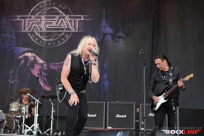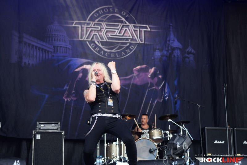 Naslednjo uro so na odru skrbeli za malho ugodnega hardrockovskega klimakterija veterani švedskega melodičnega rocka Treat. Le te je sila težko srečati na odru. Aprila letos so recimo nastopili na Frontiers Rock festivalu. V letošnjem marcu so Treat izdali novo odlično studijsko ploščo z naslovom »Ghost of Graceland«, svoj nastop pa seveda obtežili s skladbami omenjenega albuma. V prednjih vrstah se je nabralo tudi veliko mladeži, zlasti deklet, ki so jim simpatični Švedi na čelu z neverjetno karizmatičnim Robertom Ernlundom, več kot le zlezli pod kožo. Žal je nastop zasedbe Treat spremljala vseskozi ena velika težava. Zvok. Uglasitev je nagajala prav obema originalnima članoma skupine. Skozi cel koncert je »škrtala« tako kitara Andreasu Wickströmu, nekje na sredini pa je crknil mikrofon še Robertu Ernlundu, zato je ostal nastop zasedbe v spominu, kot dogodek poln živčne napetosti, tudi jeze in slabe volje, kjer sta Ernlund in Wickström ob siceršnji pregovorni švedski mirnosti in strpnosti, postreljala med koncertom iz oči znatno mero črnih strel in puščic proti tehnikom. Kakorkoli se je ekipa borila z zvočnimi peripetijami, je potek koncerta spremljal še vedno zadovoljiv zvok in ob izvedbi, kjer je bila sicer sproščenost kvinteta žrtvovana, dostavila povsem dostojno in suvereno predstavo. Kaj tudi ne bi. Izkušnje so izkušnje. V situaciji na kakršno so naleteli, so pač Treat izvlekli optimum. Lahko bi namreč vrgli puško v koruzo in prekinili koncert, ali pa bi kdo med fanti izgubil živce, sama predstava pa bi se tako razčesnila v čereh obupa. Bend je na polno udaril z materialom novega albuma »Ghost of Graceland« in tako že uvodoma nanizal izvedbo skladb Ghost of Graceland, Better the Devil You Know, Nonstop Madness, tem pa se je v nadaljevanju pridružila še Do Your Own Stunts. Bend ni spregledal niti nič manj izvrstnega predhodnika »Coup De Grace« s katere sta odjeknili izvrstni Paper Tiger ter Roar. V drugi polovici koncerta pa so fantje obrnili kretnice ter se lotili izvedbe klasičnega materiala (Ready for the Taking, Get You on the Run, Conspiracy ter zaključna World of Promises), ki je seveda v marsikakšnem srcu obiskovalcev učinkoval nostalgično.