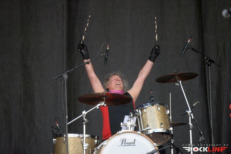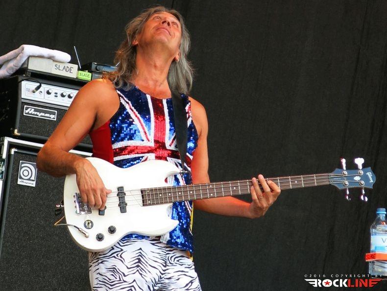 Zasedba Slade je ena redkih delujočih legendarnih rockovskih skupin, ki so s svojim pionirstvom navdihovale med drugim zasedbe, kot The Ramones, Kiss, Mötley Crüe, Twisted Sister itn.. in jih ekipa RockLine do tega dne, še nikdar v desetletni povesti delovanja portala, na odrih Evrope ni uspela prestreči. Zato je bilo zanimanje nad nastopom zasedbe toliko večje. V kvartetu delujeta izmed originalnih članov postave danes še vedno znameniti “pedenj mož” in kitarist Dave Hill ter (danes) brezzobi bobnar Don Powell, medtem ko mesto basista (violinista) in dodatnega vokalista zapolnjuje John Berry, pozicijo glavnega pevca in ritme kitarista pa Mal McNulty. Bend deluje v takšni postavi od leta 2005 dalje. Avtorskega materiala pa že od druge polovice osemdesetih ni več, saj v ekipi že davno tega ni glavnih nosilcev idej, to sta upokojena člana izvorne Slade postave Noddy Holder in Jim Lea. Kakorkoli. Bend je udaril na note nostalgije in to z izvrstnim koncertom, kjer je spretno izkoriščal orjaški in prostrani oder (s “cat walkom” vred). Zlasti je bil oder poln Davea Hilla, ki je vseskozi divje tekal z enega na drug konec, preždel veliko časa na pročelju cat walka, kjer je čvrsto navezal nase občinstvo, ki je tako z bendom med koncertom vseskozi odlično sodelovalo. Kaj ne bi, ko imaš v žeu komade (otvoritvena) Gudbuy T’Jane, pa naprej Lock Up Your Daughters, Look Wot You Dun, Everyday, Cuz I Love You, My Baby Left Me, Far Far Away, Run Runaway, Mama Weer All Crazee Now, Get Down And Get With It ter v samem finalu vroče pričakovani My Oh My ter za njo Cum On Feel the Noize. Nora koncertna ruleta Slade klasik in hitov. In bend odlično igra. Dave Hill, verjetno eden najmanjših kitaristov celega planeta, če ne galaksije, izkorišča manjši podest na katerga se vzpne. Na njem prestopica z leve na desno nogo – njegova odrska značilnost pač. Podesta sta nastavljena tudi na sredini in na skrajni levi. Ko vidiš Slade danes na odru, postane takoj jasno zakaj jih štejejo za skupino, ki je drastično vplivala na razvoj kasnejšega glam rocka in glam metala. Še vedno izžamejo iz sebe težke kvante neslutene rock’n’roll energije ter izvedbene moči, ki jo krasi briljanca visoke uigranosti. Rock of Ages je postal kremenito naelektren in voltaža eruptivnega rock’n’roll besnila razvrata polnih Slade ni popuščala. Koncert se je obrnil hipoma. Hillu in ekipi se ne glede na leta, dolgoživost nikakor ne pozna. Še vedno je v današnjih Slade mogoče začutiti tisti mladostniški žar in pristni čar nebrzdane rockovske magije!