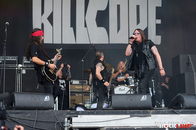 Tretjega dne se je program pričel ob 15.45h. Ker je bila nedelja, je bil program »družinski«. Torej ob enih se zbere družina pri mami, odmoli očenaš ali dva, posreba juhico ter se namesto na Severino, odpravi do festivala Rock Of Ages, kjer si med drugim ogleda tudi Gotthard in Thunder. Nemci so pač rockerska nacija. Organizator je ves čas pripravljal presenečenje na mestu otvoritve tretjega dne festivala. Pravzaprav to niti ni bilo presenečenje, ko sem ob prevzemu festivalske zapestnice prejel avtogram kartico, na njem pa ugledal koga drugega, kot? Znova Killcode. Horst, ali še ni bilo dovolj? Lani na Bang your Headu, letos prav tako in za povrhu še tu, na Rock of Ages festivalu? Okej, okej. Ne vem, vendar pa je agencija Coallier Entertainment postala skozi leta zelo domača tako na Rock Of Ages festivalu, kot tudi na Bang your Head-u, vse pa je pri tem povezano seveda tudi z imenom Twisted Sister. Ne glede na to mojo koncertno razvajenost, so Killcode s svojim novi nastopom dokazali kako izvrstna ekipa so. Gojijo posebno stilsko obliko hard rocka, ki združuje v izrazoslovje malo južnega in puščavskega melosa, malo punk porogljivosti, obilo spevnosti, zlasti v refrenskih napevih, ki so večkrat podprti s silno koketnimi in nalezljivimi ritmi. Z bendom smo se tako srečali v dveh letih še tretjič in znova je bilo treba priznati, da jim ne gre oporekati prav v ničemer. Izdelan nastop, izvrstna uigranost, dinamično izkoriščanje odra, nenehna komunikacija s publiko in precejena znoj ter kri na odru. Dejansko so se fantje razpočili do skrajnih izvedbenih meja na odru, pri čemer je vsem dejanjem suvereno poveljeval vokalist Tom Morrisey. Bend ima zunaj EP in istoimenski studijski prvenec, nastreljal pa je pravzaprav repertoar enake vsebine, kot na Bang Your Headu, saj je bila minutaža približno enaka. Zvrstile so se Show Me, Shot , Hammer, The Answer, Kickin’ and Screamin’, Hands Up , Opium Dogs, priredba Twisted Sister You Can’t Stop Rock n’ Roll ter umirjena in neverjetno nalezljiva skladba, s ščepcem pop karizme imenovana The Wrong Side, ki jo je ob zaključku lanskoletnih izdaj BYH in ROA festivalov, organizator vrtel po ceremoniji z ognjemetom. Skratka, Killcode so skupina z izdelanim videzom, ostro opravo, ostrim in osredotočenim nastopom. Kitare izvrstno funkcionirajo in grabijo. Razvijajo masten in garažiran zvok, obenem pa oba kitarista zalagata vsebino skladb z neverjetno fino odmero soliranja. Bomba v čelo za zgodnje popoldansko rock’n’roll obedovanje.