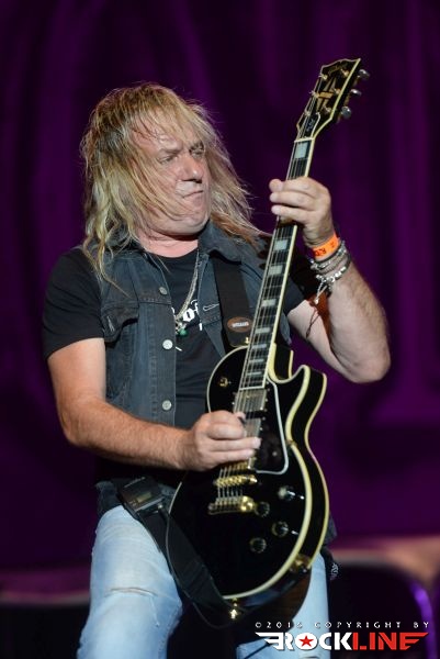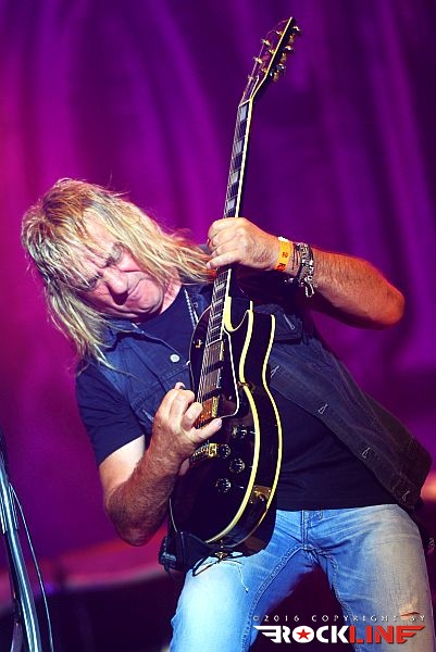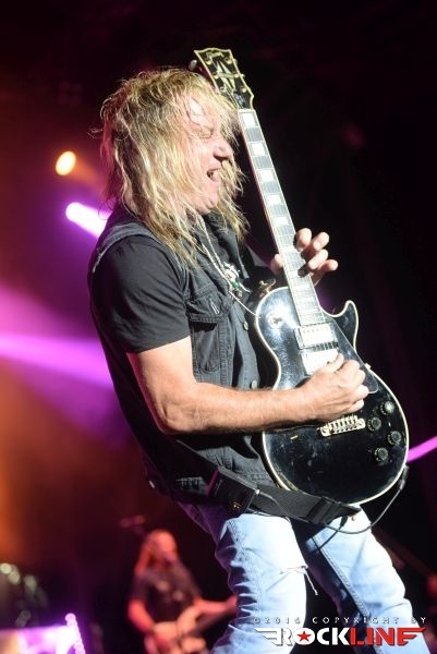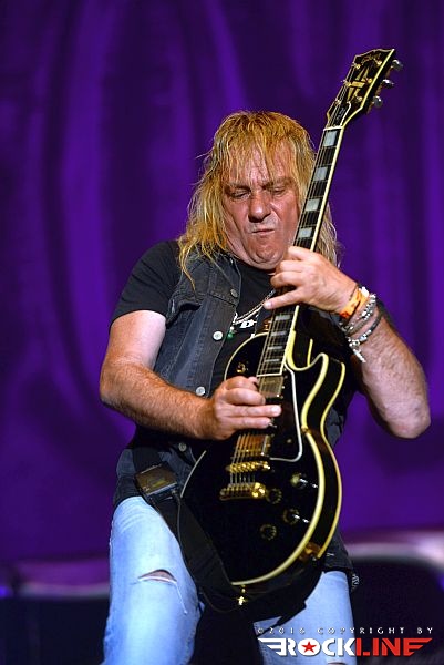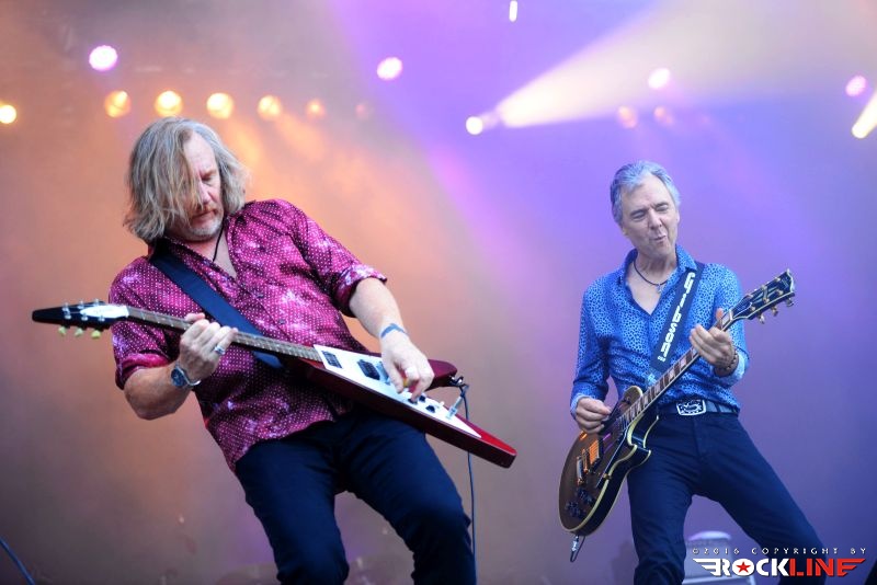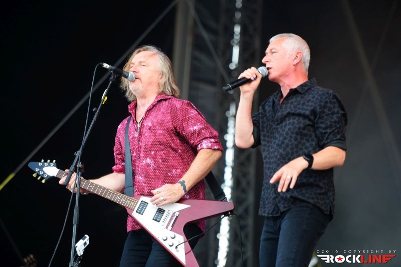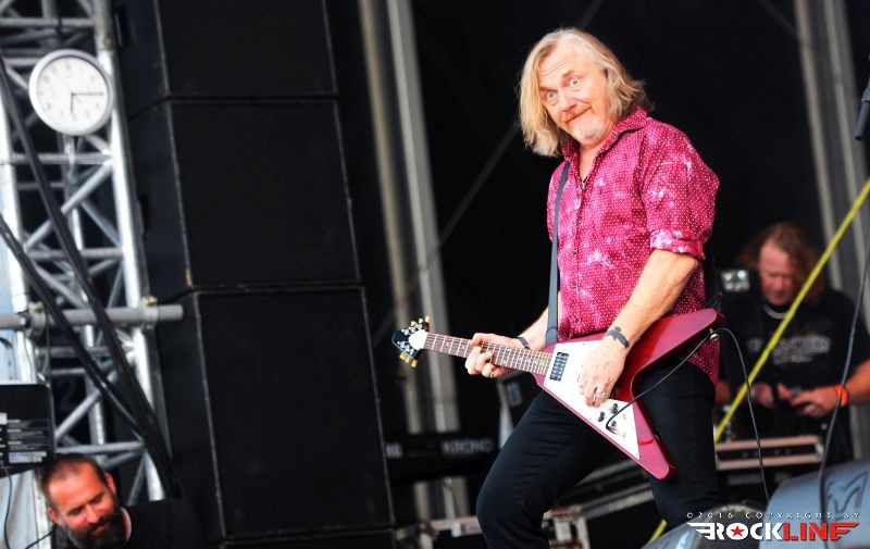 Stvari so se vrnile v zdravi rokcovski kalup ob prihodu Britancev Thunder. Ti so v letošnjem letu izdali izvrstni novi studijski album »Rip It Up«, obisk skupine na festivalu, pa je seveda sodil v sklop nastopov turneje posvečene promociji albuma. Thunder ostajajo izjemni. Danny Bowes ohranja vso karizmatičnost in je nalezljiv humorist, ki vseskozi dodaja kanček cinizma v svoj obče črni humor. Britanski humor. Večino solaž je na odru oddelal Luke Morley, ritmično kinetiko in opornico sta brezhibno vzdrževala rutinirana in neverjetno izkušena Chris Childs ter Gary »Harry« James, ki je pred kratkim zapustil Magnum. Treba je seveda omeniti Bena Matthewsa. Ta je držal pretežno ritem s kitaro. Mož je bil pred tremi leti diagnoziran za rakom in ga tudi uspešno premagal. Kar je novega na njem, je krajša pričeska. Thunder so sicer podredili večji del set liste novejšim skladbam, vzetih iz albumov »Wonder Days« in »Rip It Up«, vendar pa publike ob tem niso prikrajšali tudi s svojimi najvidnejšimi kariernimi trenutki zgodnjih devetdesetih. Tako sta s prvenca odjeknili naslovna Backstreet Symphony in Higher Ground , tu je bila tudi Low Life in High Places iz drugega studijskega albuma »Laughing On Judgement Day« ter River Of Pain (album »Behind Closed Doors«), medtem ko so za sam sklepni del privarčevali vnetljivo I Love You More Than Rock ‘n’ Roll iz albuma »The Magnificent Seventh!« (2005). Thunder so izjemna odrska utrdba in težko se kdo z njimi kosa. Do obisti britanska hard rock trdnjava. Njihova izrazno globoko pronicljiva elementarnost združevanja blues retorike križana z muzikalično nalezljivostjo in spevnostjo, ostaja edinstvena, kot tudi sama odrska predstava, s katero so Thunder uročili obiskovalce. Zagotovo eden izrazno in izvedbeno najmočnejših nastopov celotnega festivalskega programa na letošnjem Rock Of Ages-u. Eno redkih poletnih pojavljanj na odrih za Thunder, pa vseeno. Koncert, ki je prej minil, kot se je začel, s takšnim žarom in zaletom se je razvijal. Resnično bend, ki ga je treba užiti na pravi samostojni headlinerski turneji. Upajmo, da bo še kdaj kakšna priložnost za kaj takšnega,