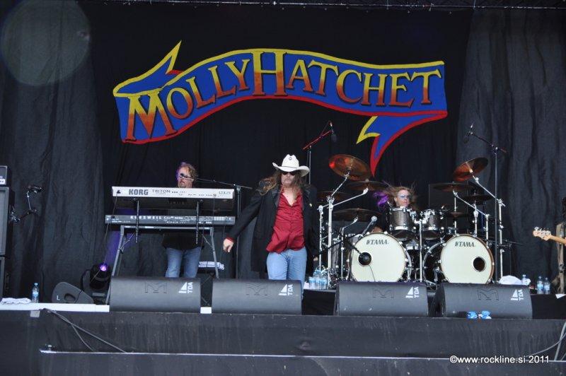 Iz mrzle Skandinavije je sledil skok na neskončne plantaže juga Združenih Držav Amerike, v čas, ko je tekel viski in so se podili kavboji! Molly Hathcet so tipični predstavniki domoljubnega rocka ameriškega juga, ki so poletje preživeli na krajši turneji po Evropi. Po nastopu na Rock of Ages festivalu so se strici odpravili v studiu v Bad Arolsnu, nato pa hop nazaj preko luže novim koncertnim dogodivščinam naproti. Molly Hatchet tudi po skoraj štiridesetih letih kariere ne opešujejo! Čeprav je edini preostali originalni član zgolj kitarist Dave Hlubek, so vsi po vrsti izkušeni glasbeniki, ki vedo, kako se stvarem streže. Zanesljivo stoječi na odru in namazani z vsemi žavbami odrsko igro prepuščajo toku dogodkov, veliko je medsebojnega šaljivega zbadanja, pri čemer prednjači zgovorni frontman Phil McCormack, mož široke postave, obvezno opremljen s sončnimi očali in klobukom čez betico. Molly Hatchet v zadnjih letih pridno nizajo nove studijske albume, skladbe katerih razumljivo zasedajo dobršen del igrane set liste. Nastop preproste retorike trdorockerskih boogie ritmov, slogovno mnogo trši od countryjevskih Skynyrdov, je edina ameriška skupina na letošnji ediciji festivala zaključila s Flirtin’ With Disaster, naslovno skladbo njihovega najuspešnejšega albuma iz leta 1979. Molly Hatchet so po očetovsko dokazali, da je južnjaški rock lahko še kako možat!