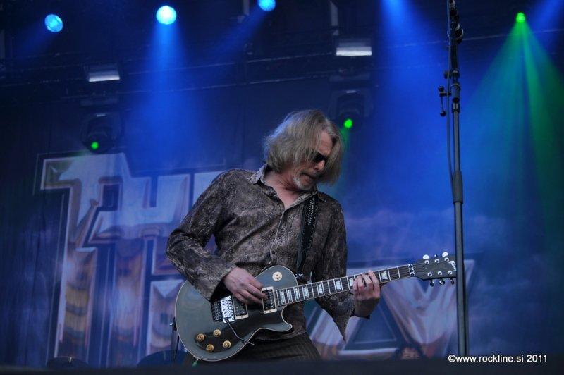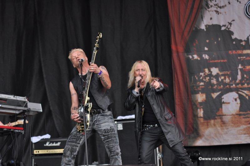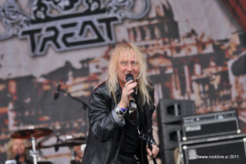 Treat so predstavniki švedske hard rockerske šole osemdesetih, ki jim je ob popularizaciji grungea v začetku devetdesetih zmanjkalo želje po ustvarjanju in so prenehali z aktivnostmi – njihova zgodba je podobna usodi mnogokatere hard rock formacije osemdesetih. Na sceno so se vrnili pred petimi leti, kot feniks iz pepela pa vstali z lansko leto izdanim ploščkom “Coup Da Grace”, albumom izredne melodične dovršenosti, ki je Treat dokončno vrnil na rockerski zemljevid Evrope. Ker Švedi gojijo nekoliko modernejši pristop napram večini preostalih zasedb festivala, se je pod odrom zbralo za kanček manj podpornikov, kar pa plavolascev na odru ni ustavilo na poti k novemu koncertnemu triumfu naproti! V dobro uro dolgem nastopu so Treat navrgli pestro paleto svojih hitov iz osemdesetih, ki so jim popolnoma suvereno konkurirale najnovejši komadi kot so The War Is Over, We Own The Night ali tik pred koncem še Skies of Mongolia. V razgibani strukturi komadov so Treat prepletali strupeno ostre, nametalizirane kitarske linije z rahločutnim vnosom klaviatur in večglasnimi vokalnimi harmonijami ter tako skrbeli za venomer dobrodošlo erotično komponento v hard rocku. Treat so dobri kot vino! Odrska kemija deluje sama od sebe, stalno spogledovanje in deljenje nasmeškov med peterico na odru in publiko jasno dokazuje, da so fantje v svojem početju popolnoma pristni in nezlagani. Refreni so po svoji spevni nalezljivosti kar tekmovali med sabo, zato je dobra ura nastopa s skladbo World of Promises ubežala mnogo prehitro. Švedi so me še enkrat več navdušili, čeprav se, roko na srce, tokratna izkušnja vseeno težko primerja z lanskoletno na Sweden Rock festivalu, kjer je bila intenzivnost in interakcija s publiko zaradi domačega terena še na stopničko višjem nivoju.