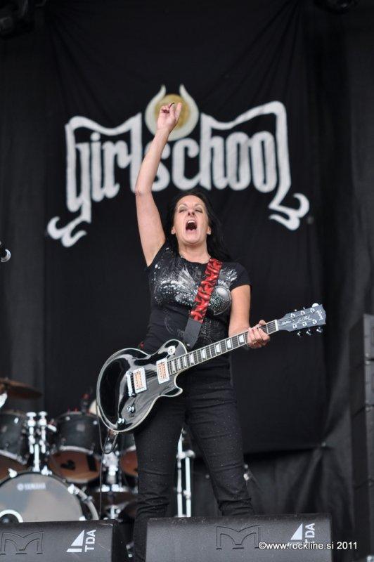 Girlschool je legendarni ženski kvartet, ki je bil pomemben člen v mozaiku razvoja britanskega NWOBHM gibanja in hkrati prva ženska heavy metal formacija, ki je dosegla ušesa številnih poslušalcev širom sveta. Skupino danes sestavljajo dolgoletne prijateljice Kim McAuliffe (kitara), Enid Williams (vokal, bas kitara), Denise Dufort (bobni) in v letu 2000 pridružena Jackie Chambers (kitara), ki je zamenjala originalno kitaristko in nekdanji motor zasedbe, preminulo Kelly Johnson. Punce (natančneje: tete) so se predstavile kot silno zanimiva zasedba, ki se ne ozira preveč na že davno tega minule mladostniške dni. Energičen nastop nalezljivih, preprostih heavy metalskih riffov in rock’n’roll ritmike v stilu Motörheadov je bil edini poklon letošnjega Rock of Ages festivala začetni fazi heavy metala in je spomnil na zlata leta začetka osemdesetih. Čeprav se je z leti nabralo nekaj gub, se Girlschool dobro držijo! Opremljene v pretežno usnjena oblačila starošolskega videza in pozirajoče na odru tudi na stara leta pridno negujejo svojo odrsko eminenco in imidž, moškemu očesu je prijazna predvsem rdečelasa frontmanka Williamsova. Girlschool so brzinsko oddrvele preko svojega repertuarja, močno osredotočenega na klasične albume “Demolition”, “Hit and Run” ter “Screaming Blue Murder”. Redni del nastopa so Britanke zaključile s hit skladbo Emergency, za katero jim pred dvemi leti na Wacken Rock South festivalu, kjer sem jih spremljal prvič, zmanjkalo časa in so jih odrski tehniki dobesedno spodili iz odra. Popoln zaključek spodobnega nastopa!