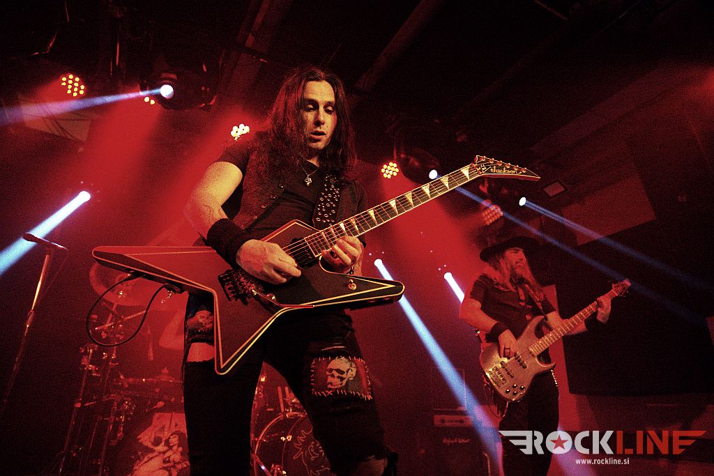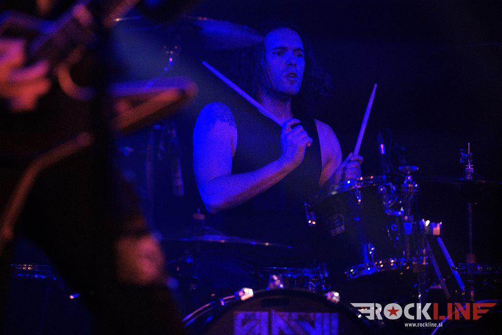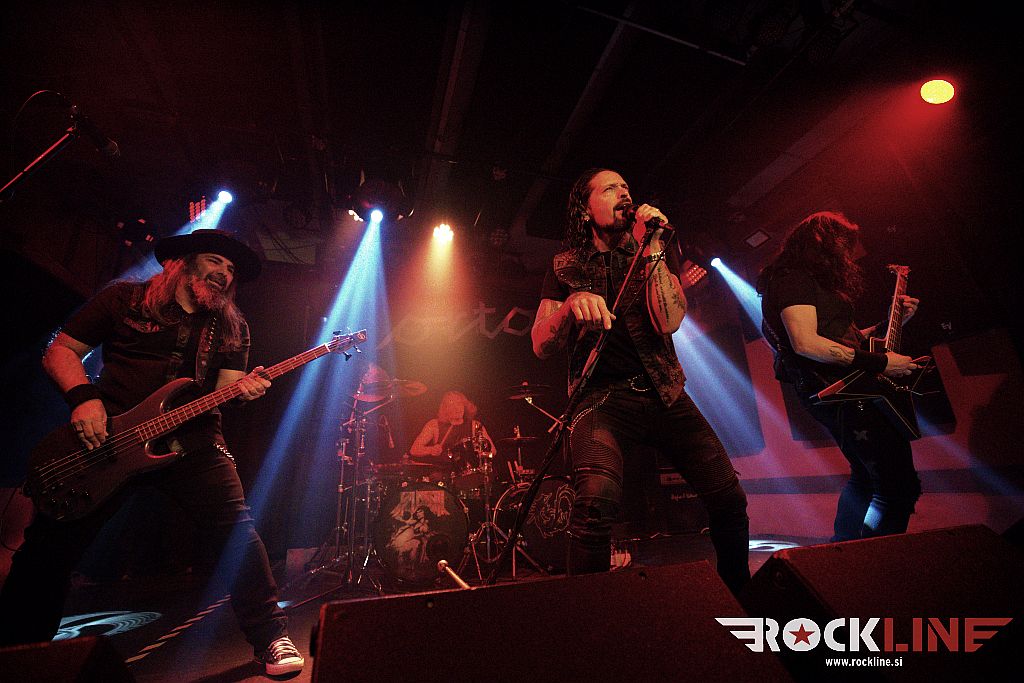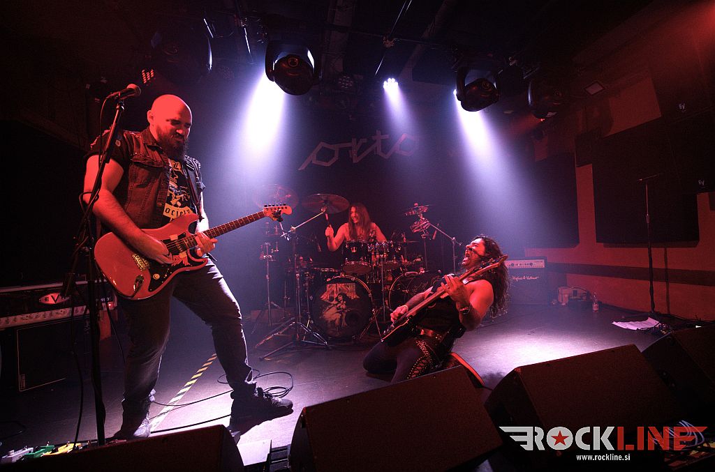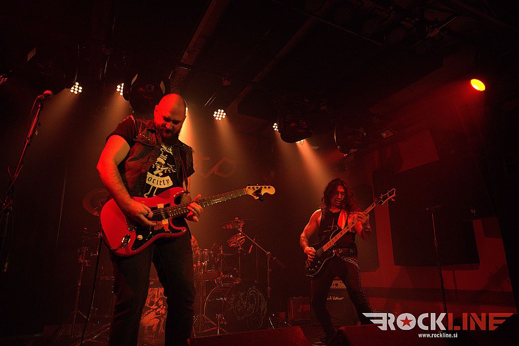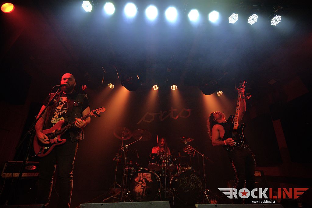 Ob osmih so na oder krenil hrvaški Flesh. Bend je kmalu po ustanovitvi, izdal istoimenski prvenec. A bilo je leta 2014. In to je davno tega. A nastaja nov material kar je dobro. Poleg gonilne sile, to je basista Roka ‘Rökindje’ Nikolića, dopolnjujeta trio še kitarist Mötej Van Matanović in bobnar Krešimir Špoljar. RockLine je trojico že ujel na koncertu Dirkschneider v letošnjem februarju (klub Boogaloo, Zagreb) in že takrat so fantje pripravili zelo dobro ogrevanje. Tudi tokrat so na moč zabavali. Če pooseblja kitarist vso statiko skupine, pa velja za basista/pevca prav nasprotno. Poln ga je bil oder. Podal se je tudi malo med publiko. Prednost je tudi da uporablja brezžični mikrofon, kar lahko sprosti na malem odru kluba precej prostora, saj nanj ni treba vlačiti dodatnega stojala. Kot nalašč za Orto bar torej. Zato je predstava delovala zelo dinamično in zavzeto. Z dostojno zvočno sliko. In? Malho ‘krepostnih neumnost’, s katerimi nas je vseskozi zasipal simpatični ‘jezični doktor’ v premorih med skladbami. Za izvedbo Iron Maiden adaptacije Bring Your Daughter je vskočil na oder Jan Leščanec (SkyEye). Glede na to da fantje niso pred tem preizkusili skupaj te pesmi, je izzvenela povsem sprejemljivo, pa čeprav je prišlo do časovnega razhajanja tako na uvodu med prva vokalno linijo in kitarsko spremljavo. Sledilo je zgledno dokončanje priredbe. Bend je sklenil svoj ‘Konanovsko-mišičnjaški’ nastop s komadom Easy Rideth – Heavy Striker.