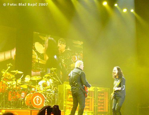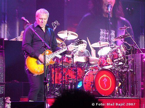 Torej po tem je sploh neumno še tehtati kaj je človek dobil za 60,00€ kolikor, so stale vstopnice, kar ni malo seveda, pa vseeno. 2 uri in tričetrt minut čistega špila, kopico skladb, ki jih Rush kar lep čas niso igrali na odru, enkraten zvok in nad vsem edinstveno magijo, katere kreacije je sposobna le bit tega tria. Neverjetno je koliko zvočnega prostora pokrijejo le trije glasbeniki. Jazzovko raziskovalni bobni, rožljajoči Geddyjev bas, s povsem svojo barvo in pristopom, strupeno navito odmevajoči distorzirani zvok kitare Alexa Lifesona. Geddy je neverjeten. Hkrati drži linije na klaviaturah, skrbi da bas linije ne zamrejo in opleg tega istočasno skrbi še za vokal. Lifeson je na odru razposajen, kot dokazovanja željan mladenič, ki je šele komaj sestavil skupino. Lifeson se je takoj v začetku koncerta, med skladbo Digital Man ranil v kazalec leve roke med soliranjem, iz katerega je krvavel še lep čas prvega dela koncerta. Dotik občutka spontanosti, ki ga premore Lifeson z odrsko igro ob tem ne more ostati spregledan! Trojec, ki te posesa s kreacijo Rush sveta v posebno pravljico za slabe tri ure iz katere se prav na noben način nočeš več prebuditi, dokler ne odjekne zadnji ton YYZ in dokler ne reče Geddy: “Hvala vam, upam da se znova kmalu vidimo!” Vsega trije ljudje. Enak stavek bi se tu zapisal ob Motorhead koncertu, a zgodba s katero prideš do takšnega zaključka, je povsem druga! Brrrr,… strah me je, da bomo Rush spet zelo dolgo čakali, da znova izdajo album ter pridejo v Evropo. Sploh je bil koncertni obisk mnogo revnejši kot pred tremi leti, ljudi je bilo v Milanu to pot dobrih 6000, prej manj, kot več. Domnevam da nas bodo Rush, do nove turneje pustili stradati kakih 5 do 10 let.