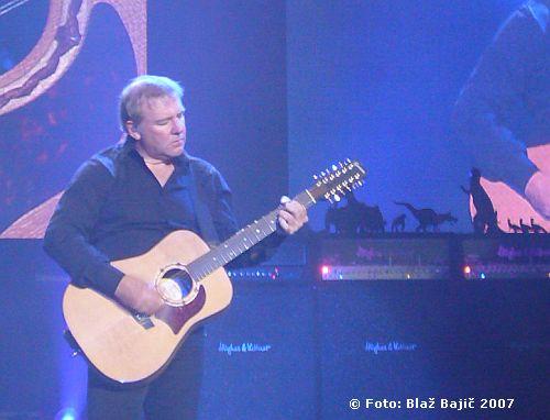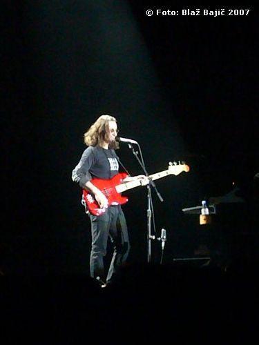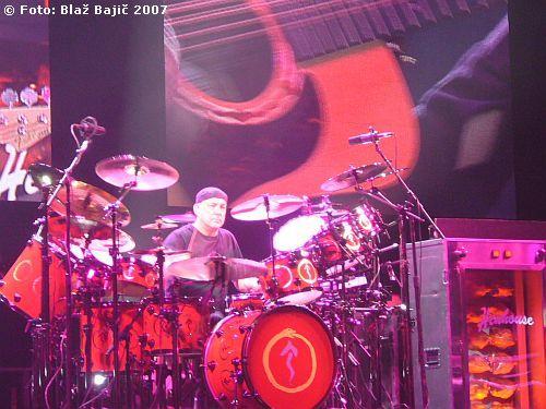 Geddy seveda za klaviaturami, opremljen s Fender bas kitaro, z značilnim vokalom, vokalom ki ga je moja prijateljica pred kratkim odlično okarakterizirala, kot najboljši ženski vokal v rocku, vseskozi suvereno in potentno napadalno. Neil Peartovi bobni so dobili za turnejo Snakes And Arrows posebno rdečo preobleko, s simbolom kače in puščice. Mož si je v ta namen s taisto vezenim simbolom, posodobili tudi svojo konfekcijo natančneje “fes” (brez cofa), ki ga nosi na glavi med koncerti.