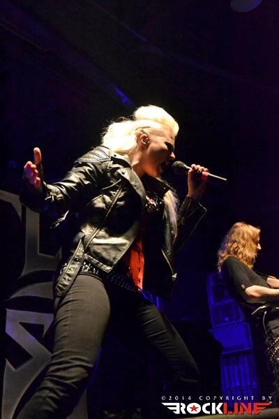 It seems like the Swedish war machine decided to pretty up the stage on this tour and invited two support bands with female singers. The first to take the stage were Battle Beast from Finland. Young band won Wacken festival newcomer competition and the following year released their debut album ‘Steel’ for Finnish market. The same very year, Nuclear Blast heard the album, offered the band a contract and re-released ‘Steel’ on worldwide scale. 2012 brought the change – singer Nitte Vallo had to leave the band due to family problems and the band recruited feisty blonde Noora Louhimo. And how does a female voice perform in power metal, you might ask? Superb! If the hall was more or less empty, when Battle Beast started to play, the situation changed in a matter of minutes. Battle Beast play a very catchy metal, which engulfs our ears and minds and leaves no-one at peace. Music may not be technically very complex but on the other hand they openly show their influences range from Iron Maiden and Judas Priest to the more modern power metal bands, even to Sabaton. The performance was energetic, despite the very small stage; each war demands sacrifices and since Sabaton have a huge drum tank on stage, support bands were left with little stage space. The Finns used their 30 minutes up to the maximum while the positive energy that was ruling the hall added the extra kick. Battle Beast, a band to look out to in the future!
