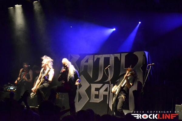 Očitno se je švedski vojni stroj za to turnejo odločil malo polepšati oder in s seboj povabil kar dve skupini z ženskim vokalom. Prvi so oder zavzeli finski Battle Beast. Mlada zasedba je leta 2010 zmagala na tekmovanju še neuveljavljenih skupin festivala Wacken, prihodnje leto pa na finskem izdala svoj prvi album ‘Steel’. Še isto leto, jih je opazila založba Nuclear Blast, ki je poskrbela še za svetovno izdajo albuma. Leto 2012 je prineslo tudi menjavo pevca; skupino je zaradi družinskih težav zapustil Nitte Vallo, za mikrofonom pa ga je zamenjala svetlolasa Noora Louhimo. In kako se obnese ženski vokal v power metalu? Odlično! Če je bila ob začetku koncerta dvorana precej prazna, pa so jo s svojo glasbo dodobra napolnili že v nekaj minutah. Battle Beast igrajo zelo nalezljivo metal, ki gre hitro v ušesa in človeka ne pusti ravnodušnega. Čeprav tehnično ne najbolj zahtevna glasba, pa v svojem bitu ne skriva močnih vplivov svojih vzornikov od Iron Maiden in Judas Priest, pa do modernejših skupin, v kombinaciji s klaviaturami celo Sabatonov. Nastop je bil energetičen, navkljub zelo malem prostoru na odru – vsaka vojna zahteva žrtve in ker Sabaton s sabo vozijo bobnarski tank, se predskupini dobesedno drenjata na odru. Svoj polurni nastop so Finci izkoristili do maksimuma, pozitivna energija v dvorani pa je dodala še piko na i. Skupina, na katero bo v prihodnje še treba paziti!