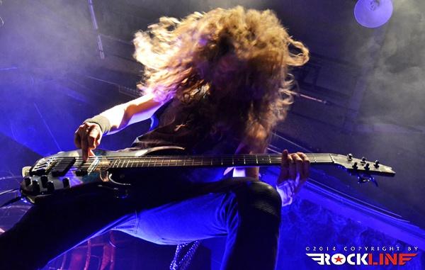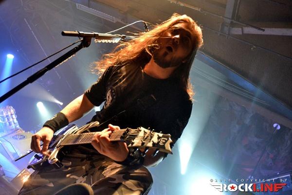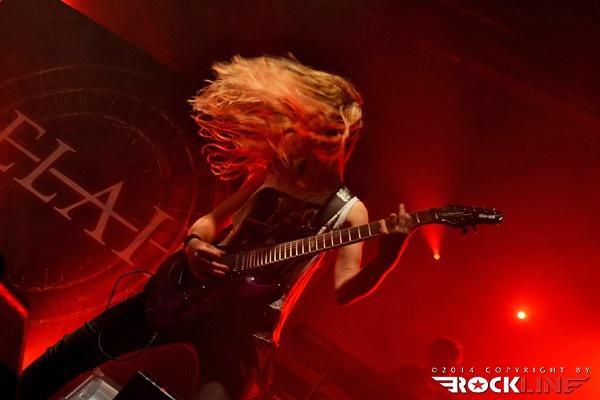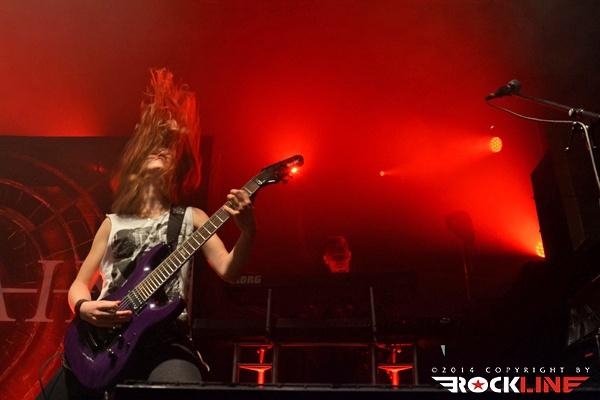 Temperature hasn’t really started to fall yet, when their little piece of the stage was taken by Dutch Delain. Symphonic metalheads, which remind a lot like Within Temptation, which doesn’t really surprise given that Delain’s co-funding member Martijn Westerholt used to play in that band. More than a decade of musical experience was felt through an uncompromising performance. The huge Otto Schimmelpennicnk van der Oije with his thunderous bass and occasional growling vocals took care of the lower end of the spectrum, while the atmospherics were taken care of by the before mentioned Martijn on keyboards. Delain fans might have missed their guitarist Tim Somers. Instead, the shredding was done by young 22-year old Merel Bechtold (MaYaN). They say poison is stored in little flasks and Merel proved this saying – using her 7-string Bo-El, Engl amps were thundering her interpretation of Tim’s work, of which neither Tim nor any other self respecting guitarist wouldn’t be ashamed. Last but not least there’s sexy Charlotte, which on this concert helped to bring temperature up even more – especially among the male metalheads. With semi transparent shirt and no bra, she left the imagination go wild and I questioned myself, whether the guys even heard the band that played on stage. This even led to the situation when the guys in the public started to sing »Put your B**bs out so we can play«. But that put aside, Charlotte proved that she’s a great singer with a vocal maybe not as high as those with Nightwish or Within Temptation but still soft and soothing enough for a nice contrast to the low-tuned guitar.