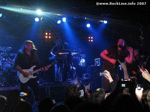 Ob desetih pa smo vendarle po vse prestanih mukah dočakali kar je čakala celotna, kar lepo napolnjena dvorana Planet Musica. Luči so ugasnile in iz zvočnikov je zabučal začetni komad aktualnega albuma Paradise Lost ameriških velikanov progresivnega metala Symphony X. Le prvi takti intra Oculus ex Inferni so bili potrebni in publiki se je zrolalo. Zares prijetno sem bil presenečen nad odzivom avstrijske publike, ki večkrat velja za hladno, saj so tokrat dokazali, da so lahko še kako hvaležna publika. Symphony X so tokrat na evropskih telh odigrali vsega štiri headlinerske koncerte, zadnjega prav na Dunaju, sicer pa nastopajo kot predskupina Dream Theater. Fantje so po petih letih tišine izdali odlično ploščo Paradise Lost in sam osebno jim dam povsem prav, da so odigrali kar polovico fantastičnega albuma, ki ga sam štejem med najboljše izdelke letošnjega leta. Takoj po intru so tako eksplodirali z ubijalsko Set the World on Fire (The Lie of Lies) z božanskim, nalezljivim refrenom, ki smo ga Russelu Allenu dobesedno jemali iz ust. Že takoj na samem začetku se je poznalo zadovoljstvo na obrazih članov benda, ki niso skrivali navdušenja, kot na povsem razgreti publiki. Allen je povedal, da je bila dunajska publika najboljša izmed tistih na štirih odigranih koncertih in po videnem mu kar verjamem. V še eno mini mojstrovino z novega albuma, Domination, nas je z bas solom popeljal odlični Mike Lepond, ki so mu prsti po strunah tekli kot namazani, a vse oči so bile ta večer (ne)pravično uprte v enega najboljših kitaristov v metalu, Michaela Romea, ki je navduševal s sapojemajočimi solažami in si zato prislužil tudi večkratno skandiranje svojega imena. A na Dunaju so brez sramu prav vsi člani razkazali vse svoje sposobnosti, ki so težko opisljive – vse od nenormalnih bas linij Leponda, supersoničnih solaž in morilskih riffov Romea, prelepih klavirskih linij Michaela Pinnele, odtrganih bobnarskih mojstrovin Jasona Rulle in nenazadnje fenomenalnega vokalista Allena, ki je ves večer pel na najvišjem možnem nivoju pa čeprav naj bi bil rahlo prehlajen. To ga očitno ni ustavilo, tip je dal na odru vse od sebe, tako dobrega frontmena nisem videl že lep čas. Na odru je skakal kot nor, kar za dvometrsko postavo ni prav lahko delo, publika pa mu je seveda jedla iz rok. A vse to pozabiš, ko Allen odpre usta. Kakšen vokal!!! Od falzetnih krikov in neverjetne melodične srednje linije pa na agresivnih delih že skoraj thrasherskega vokala, Allen je briljiral vsako sekundo koncerta. Fantje so z novega albuma odžgali še The Serpent’s Kiss in Paradise Lost, nato pa so nas vrnili na, za mnoge njihov najboljši izdelek, album The Odyssey (2002), z rušilno Inferno (Unleashe the Fire). Vzhod na Olimpu smo opazovali s kompleksno Smoke and Mirrors, se spet izgubili v raju z The Walls of Babylon, z vratolomno hitrostjo nas je na Divine Wings of Tragedy odpeljala odlična Sea of Lies, z istega albuma pa nas je osrečila še Of Sins and Shadows. In vsega je bilo po dobri uri konec. Res? Seveda ne, fantje so se ob bučni podpori vrnili nazaj na oder, Allen pa je s steklenico ruma in zastavo Jolly Rogerja naznanil kaj nas čaka… Troja leži v gorečih ruševinah, vračam se na Itako, v objem moje Penelope in rad bi po desetih letih spočil očin na obalah Itake in pokazal sinu Telemahu kako se obrije prva brada… Koncertni vrhunec – epska 25 (!) minutna mojstrovina The Odyssey, ki temelji na grškem epu Homerja, Odiseji. Kar smo slišali v skoraj polurnem magnum opusu je z besedami težko opisati, šlo je za čisto inštrumentalno in vokalno perfekcijo, slišati The Odyssey v živo pa je nekaj, ob čemer se mi še sedaj ko pomislim nanj naježijo dlake. Žal pa je bilo z The Odyssey tudi vsega konec, po uri in pol. Brez težav bi lahko v setlisto vrinili vsaj še en komad, predvsem ciljam na kaj z album V, na katerega so povsem pozabili. Tudi tonci so zaslužijo manjšo grajo, saj sta bila vokal in kitara na trenutke preslabo slišna. A vse te malenkosti zbledijo ob spominu na energijo benda in publike in magično uro in pol, ki so nam jo namenili Symphony X. Spomladi 2008 se fantje vračajo na evropske odre. Nikar jih ne zamudite, saj lahko solo ponudijo veliko več kot predskupina Dream Theater, če se boste odpravili na katerega izmed njihovih koncertov v Italiji.